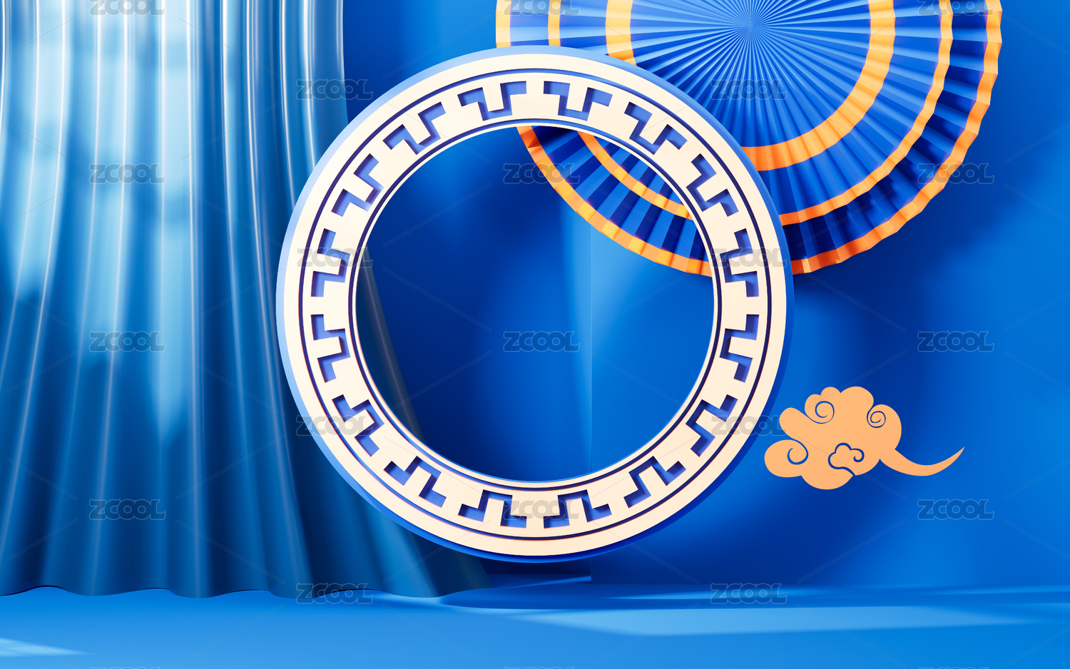 藍(lán)色中國(guó)風(fēng)傳統(tǒng)背景3D渲染