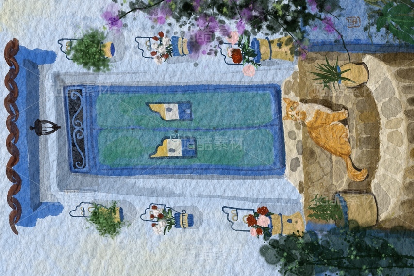 藍(lán)色摩洛哥-旅游插畫