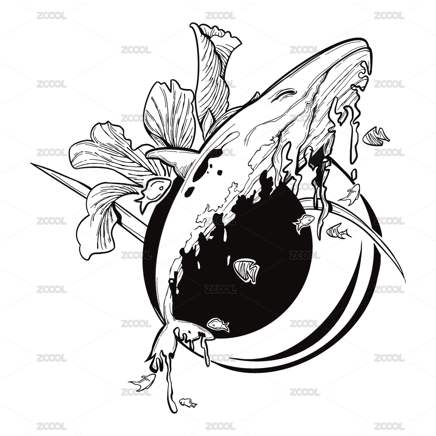 鯨落概念鯨魚上開滿了鮮花