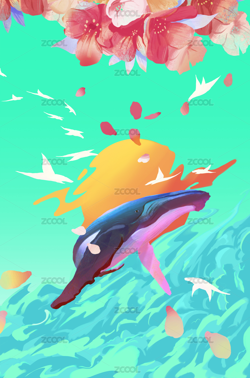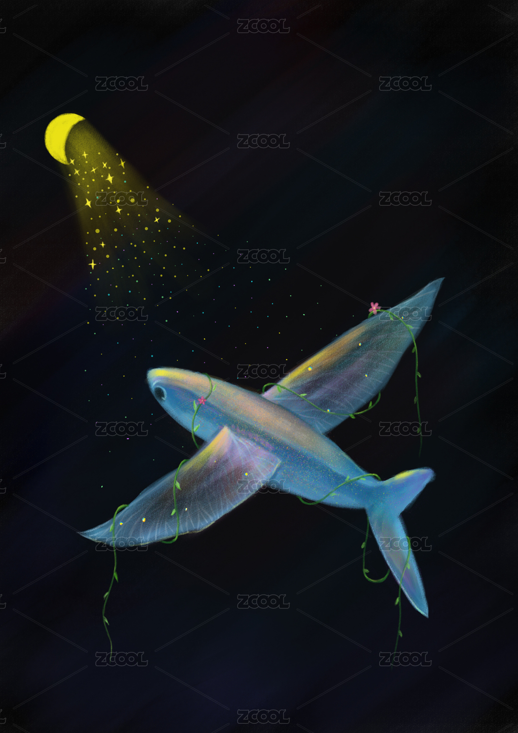治愈系鯨魚插畫小場(chǎng)景