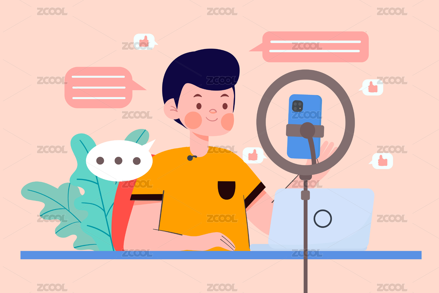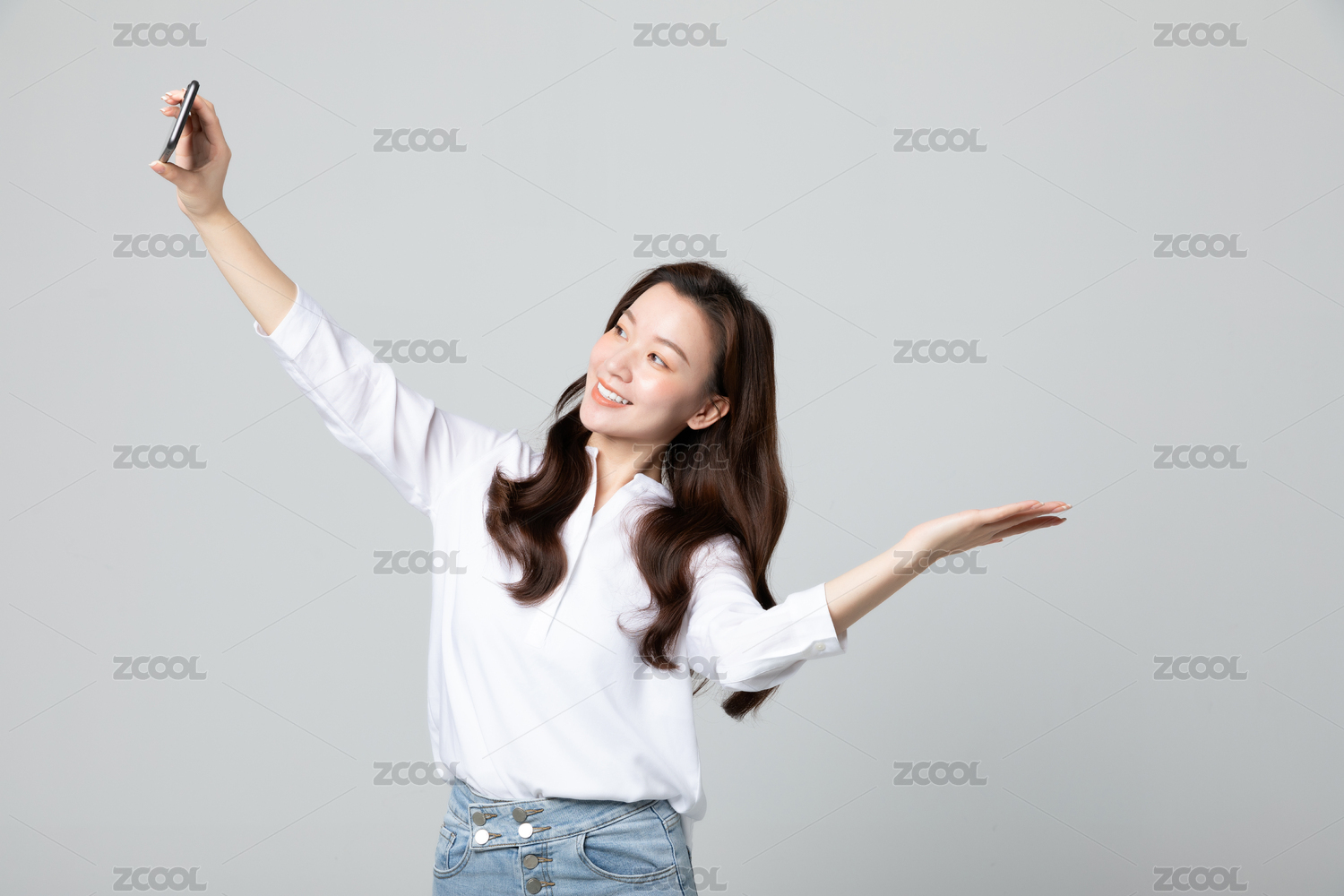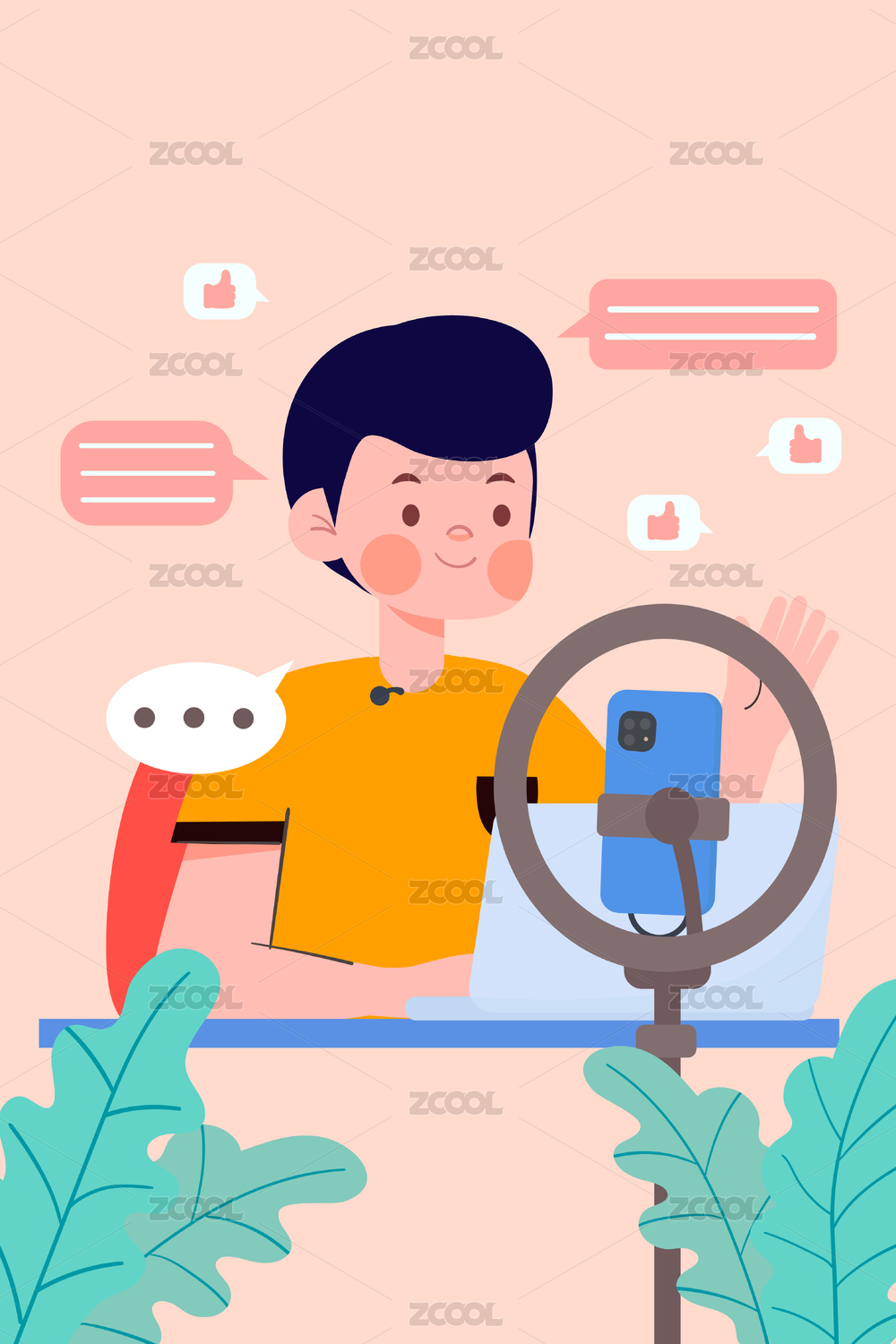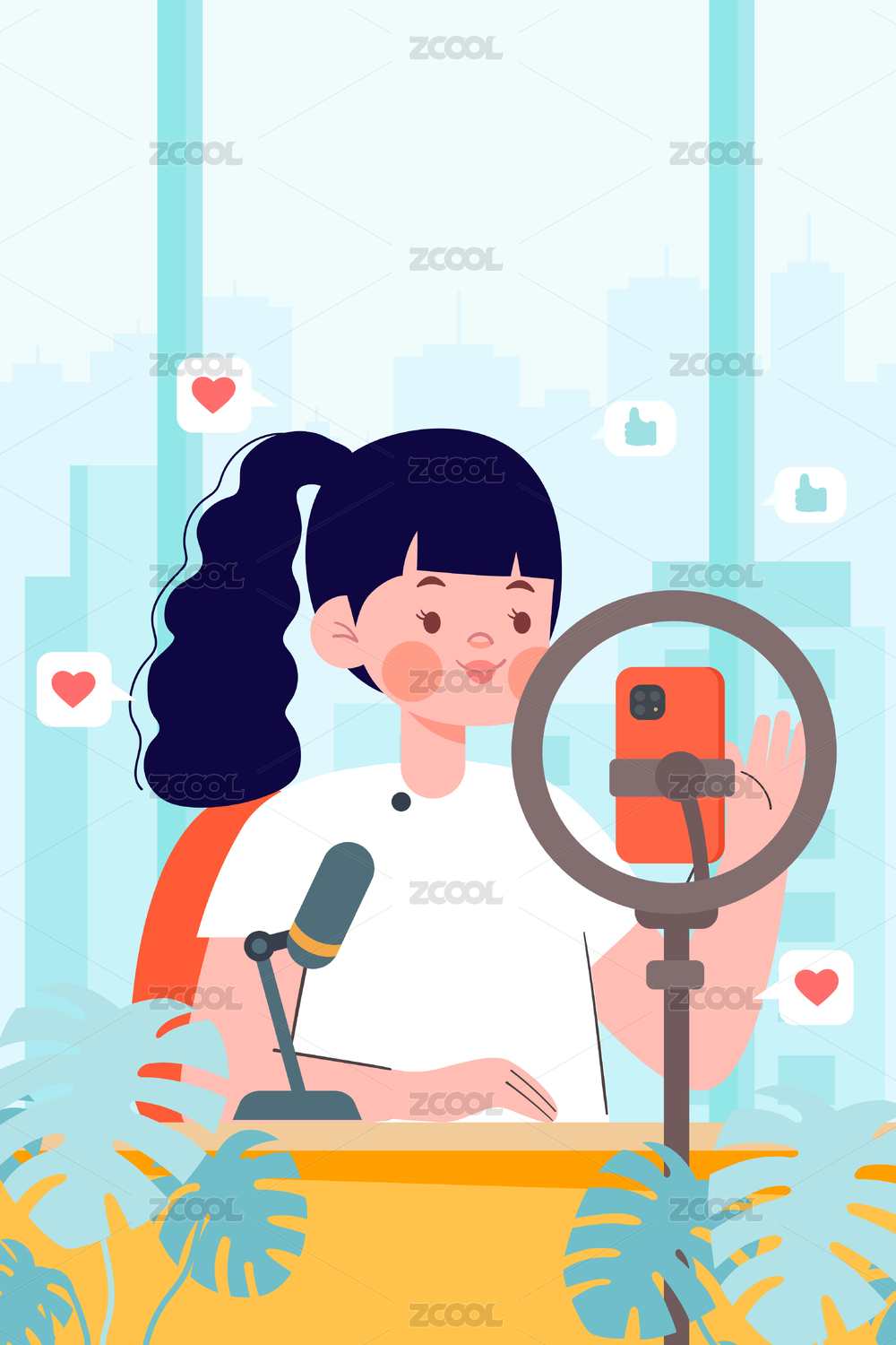 美女主播對(duì)著手機(jī)直播比心打招呼
