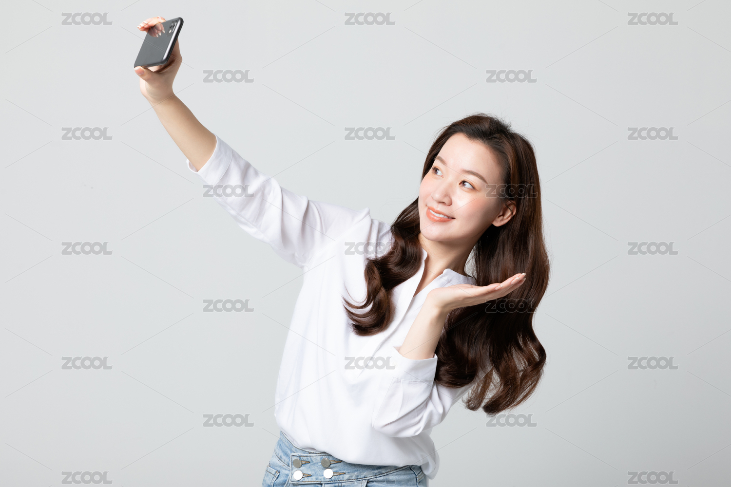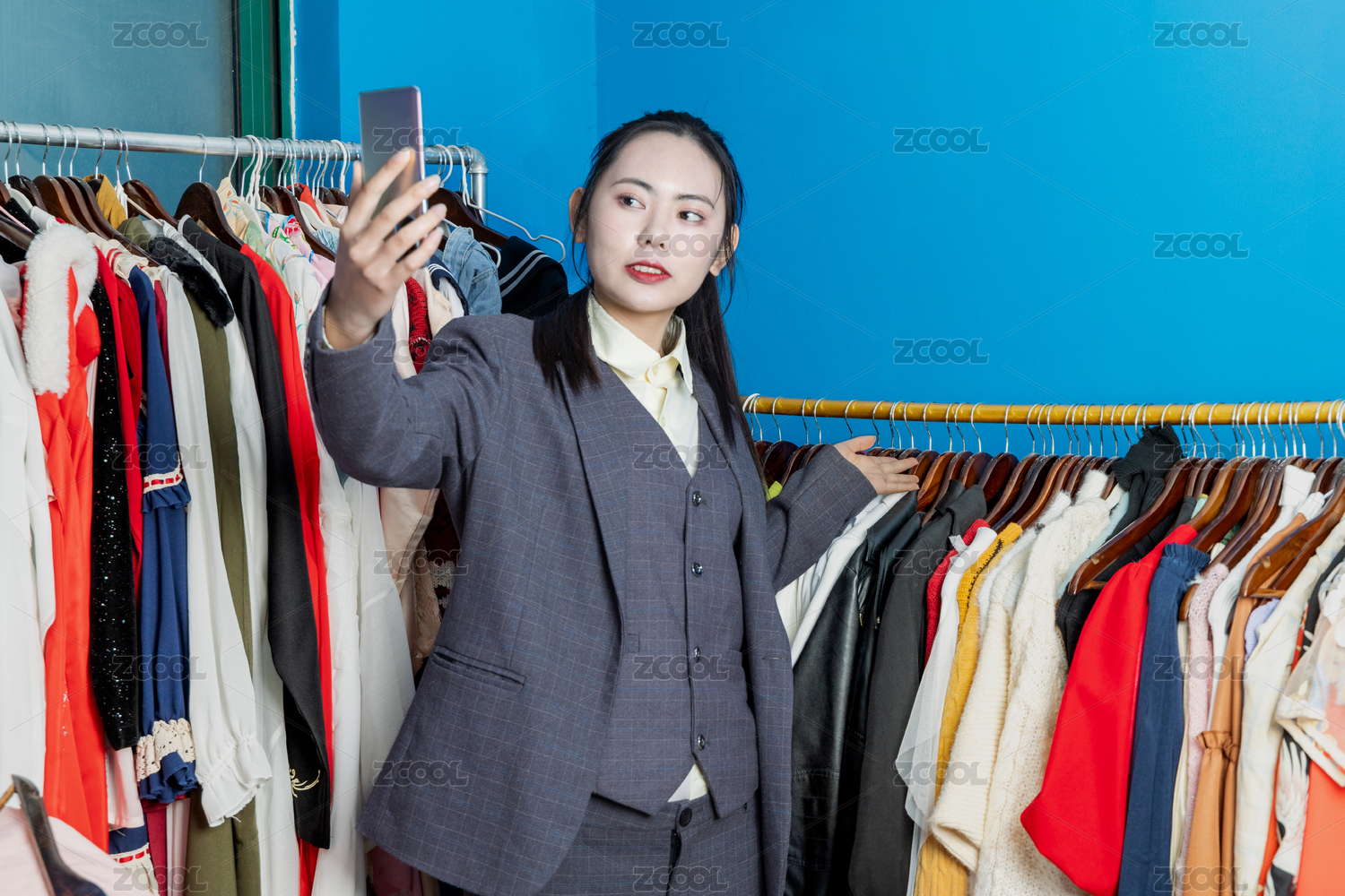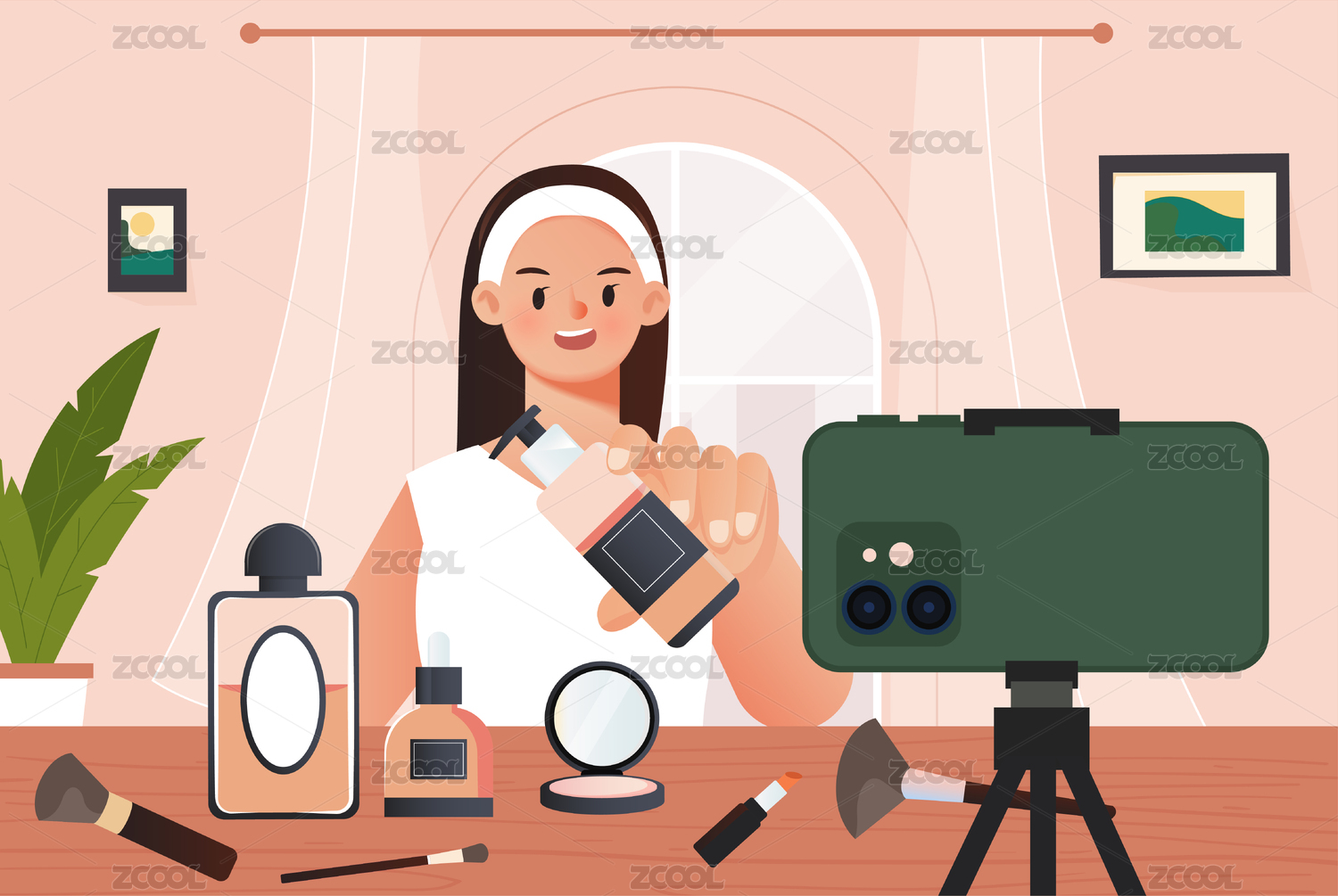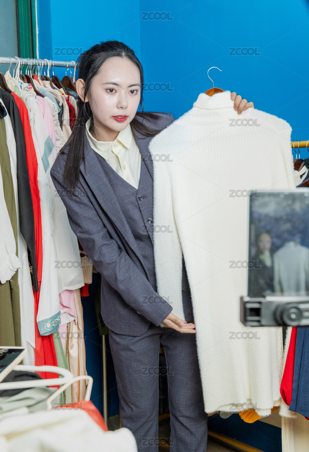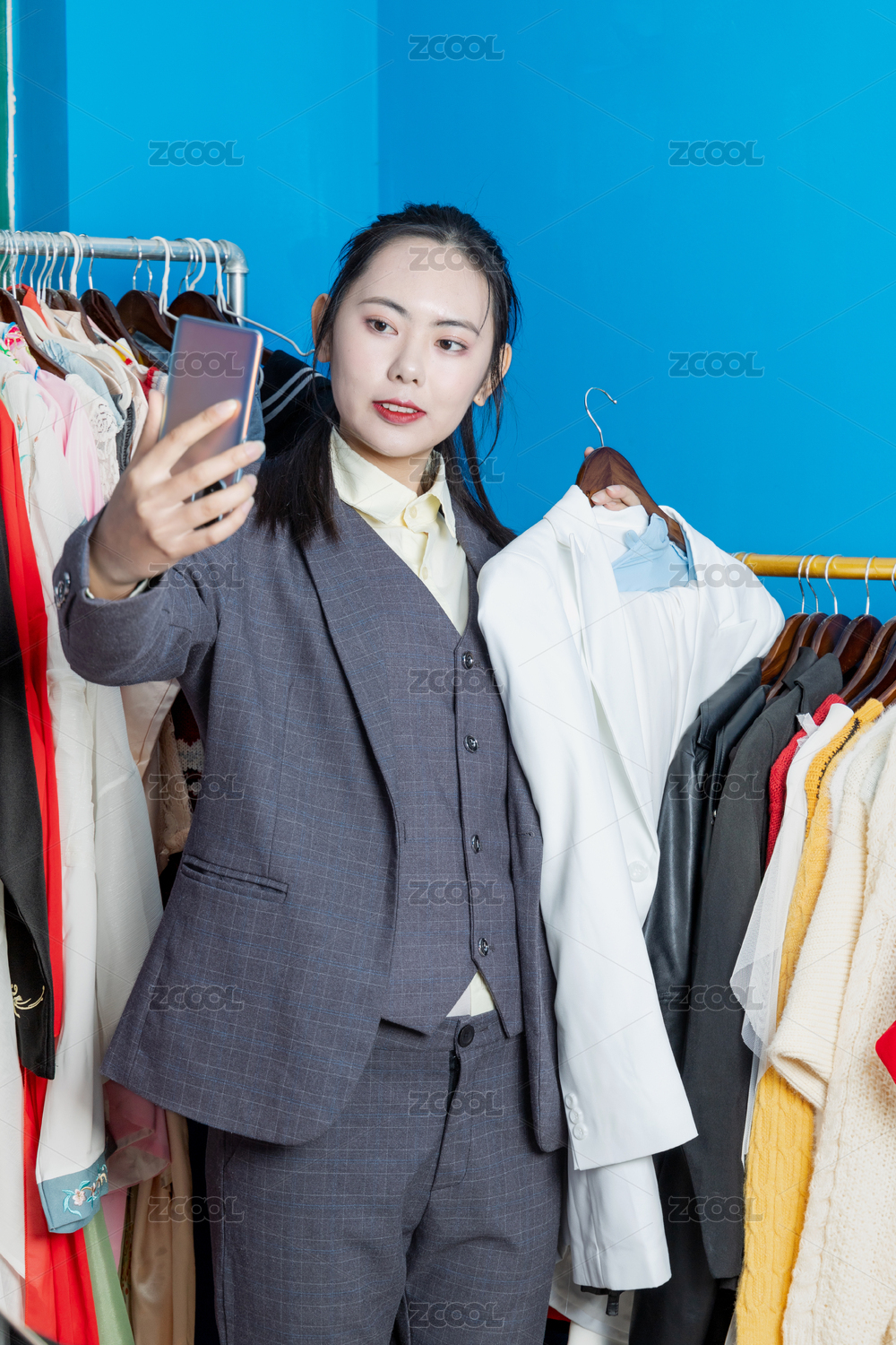 美女主播對(duì)著手機(jī)直播比心打招呼