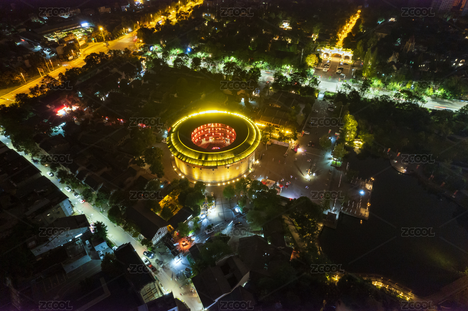 成都龍泉驛洛帶古鎮(zhèn)博客樓土樓客家樓夜景