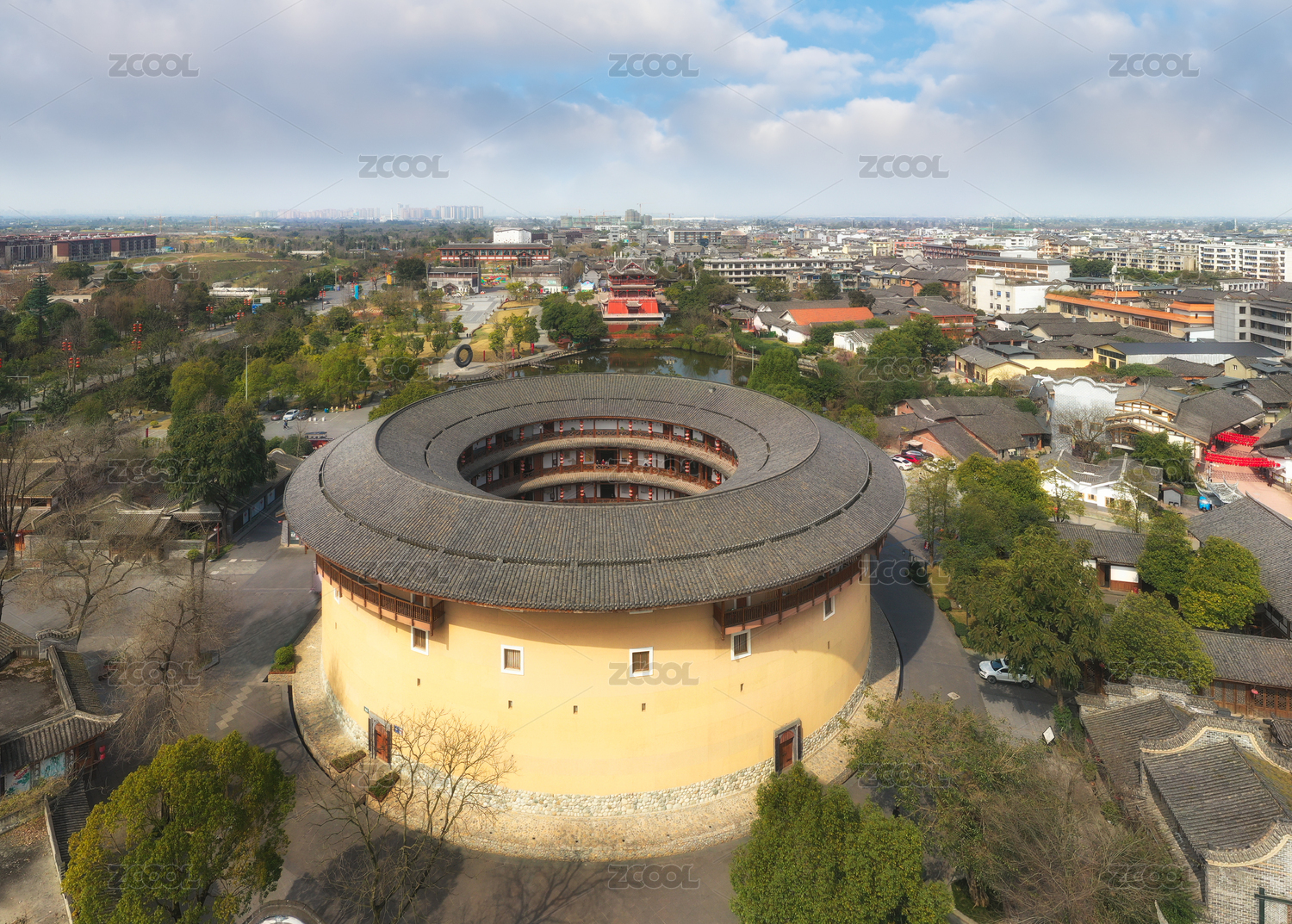 成都龍泉驛洛帶古鎮(zhèn)博客樓客家土樓航拍