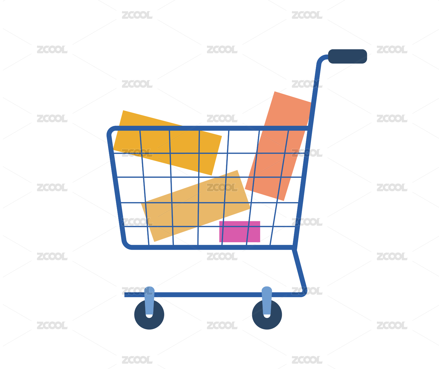 一個裝滿各種盒子的超市購物車 扁平風(fēng)格矢量插畫