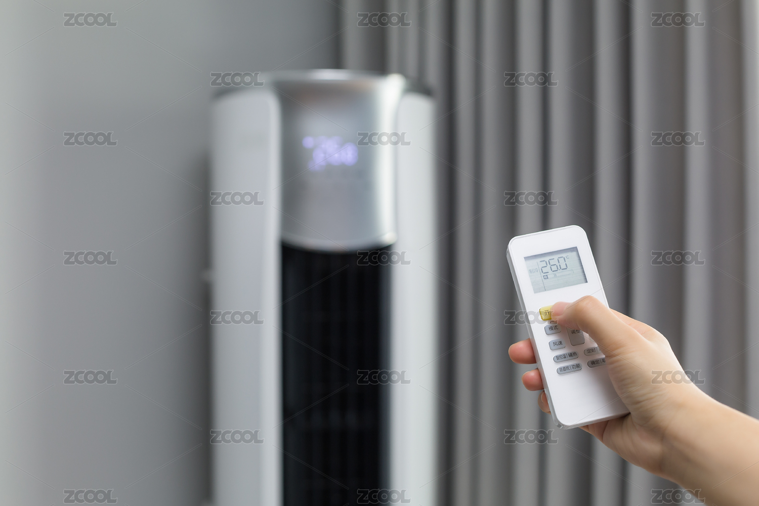 手拿遙控器操作開關(guān)空調(diào)