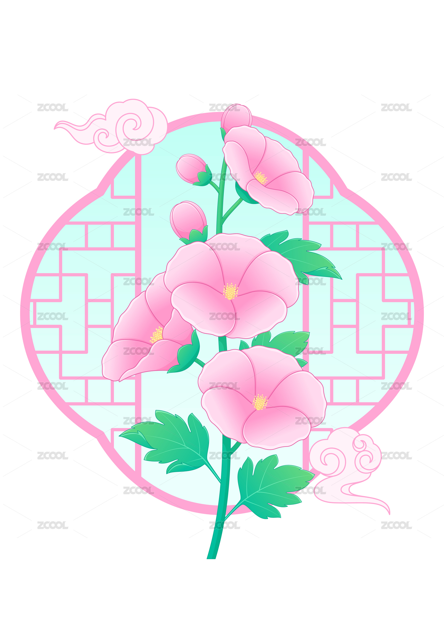 一丈紅蜀葵花背景矢量插畫(huà)設(shè)計(jì)