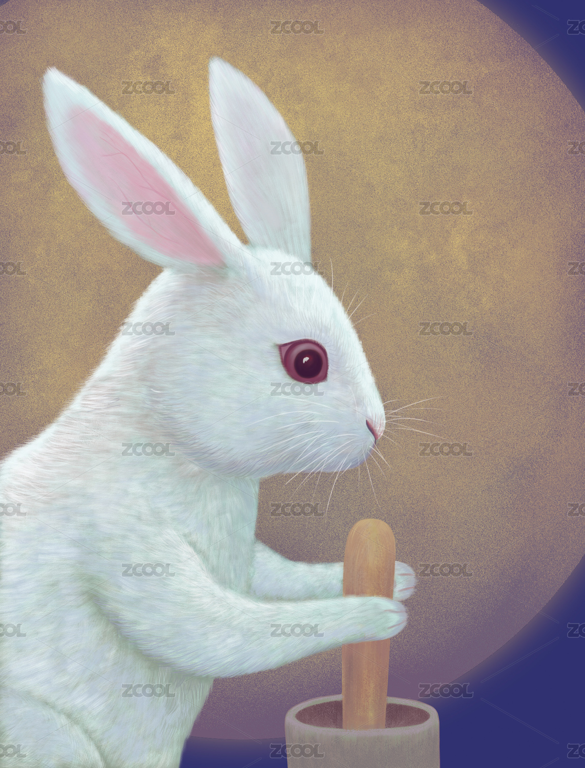 玉兔奔月插畫,中秋節(jié)滿月矢量插畫