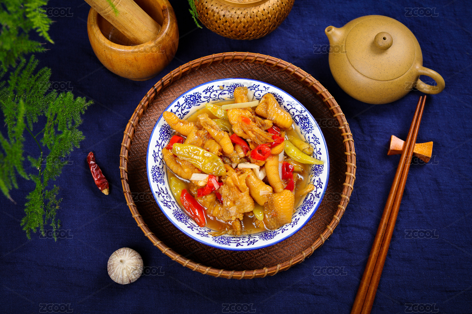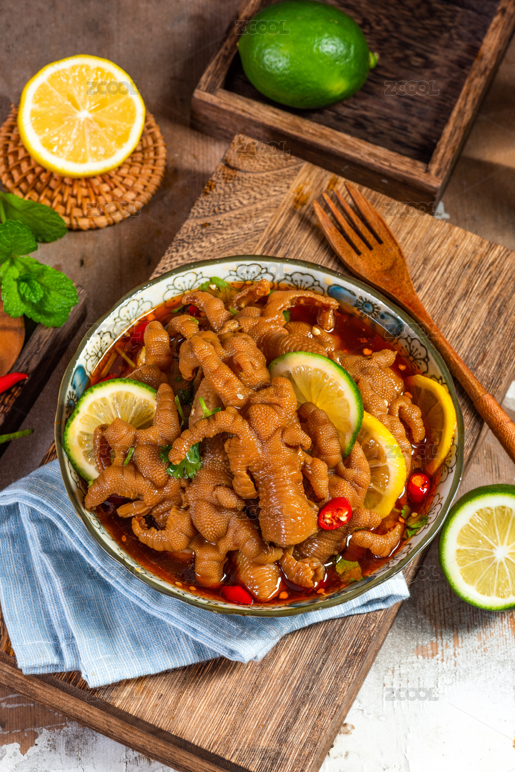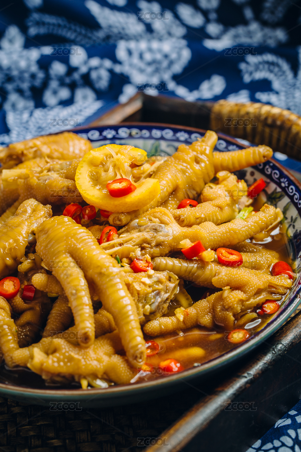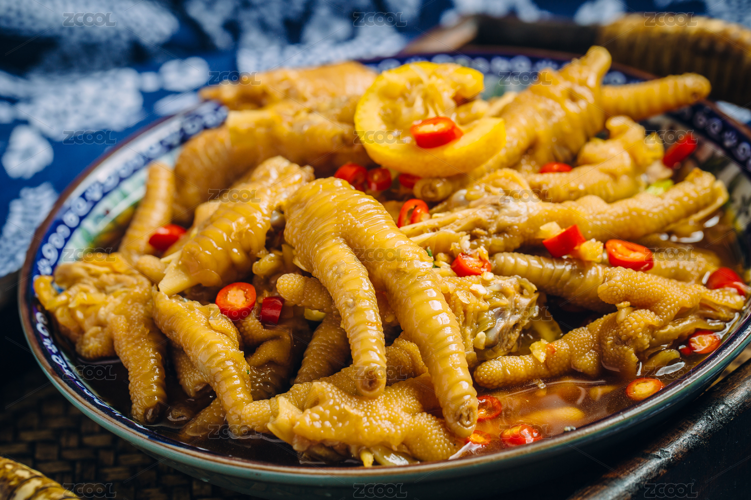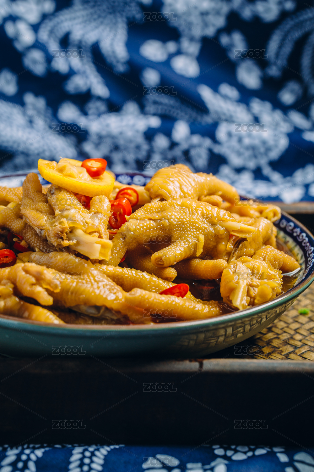 藍(lán)色清新背景上的一盤檸檬酸辣鳳爪