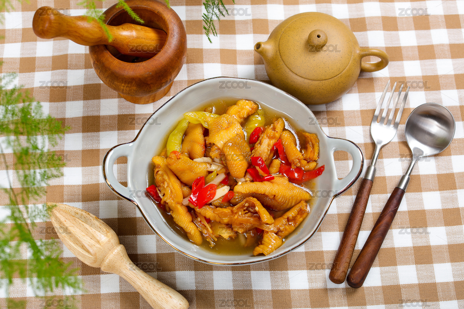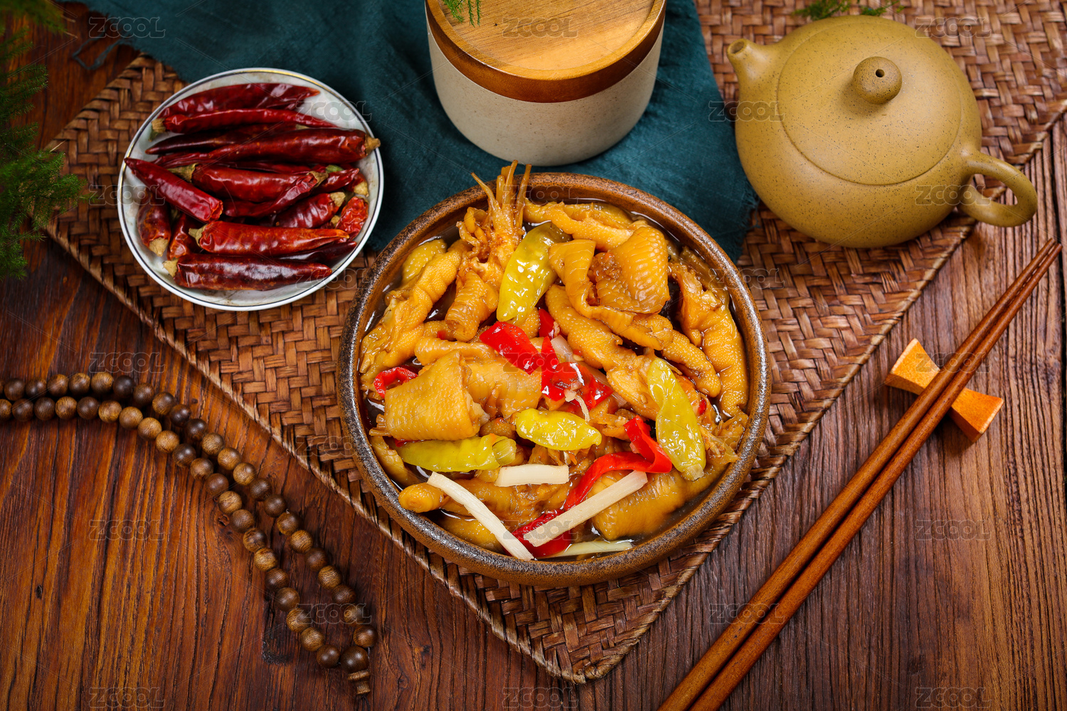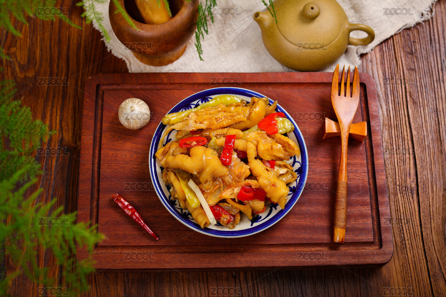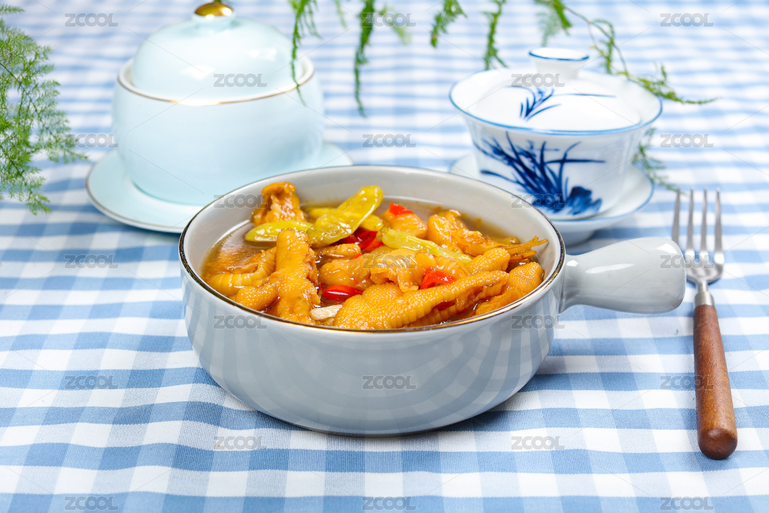 藍(lán)色清新背景上的一盤檸檬酸辣鳳爪