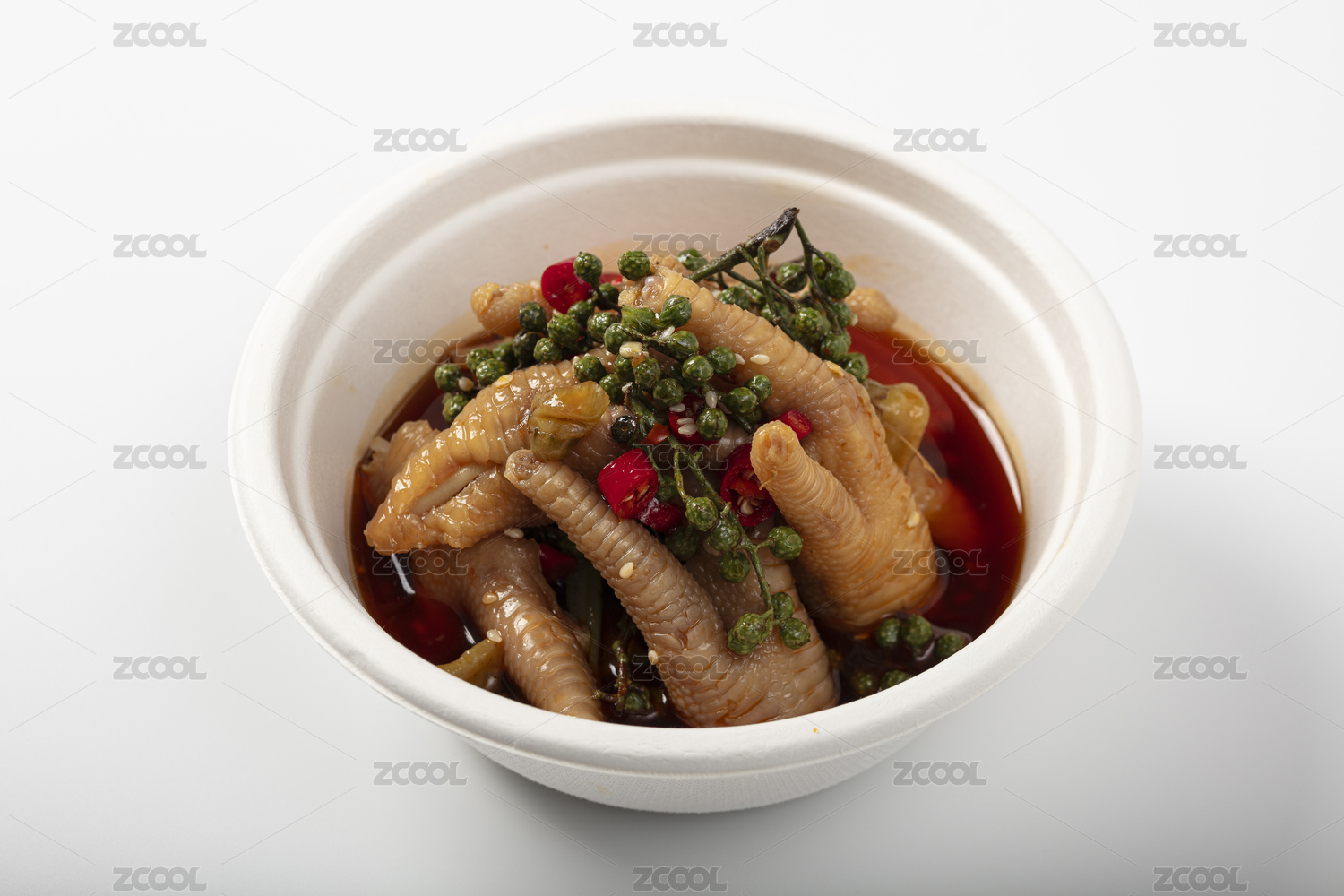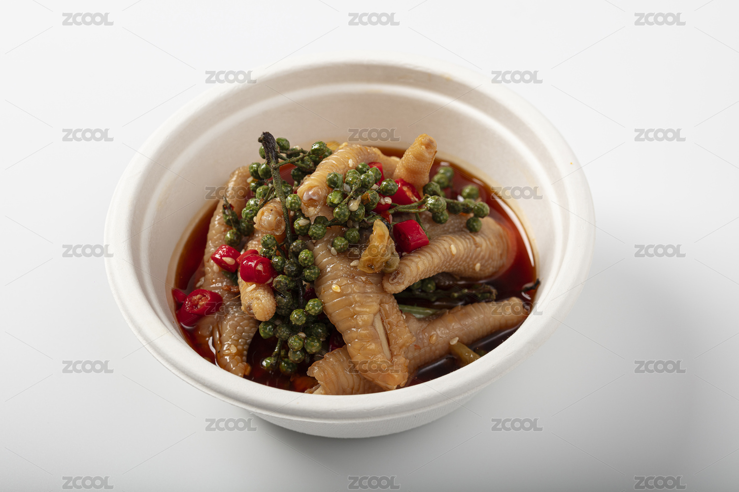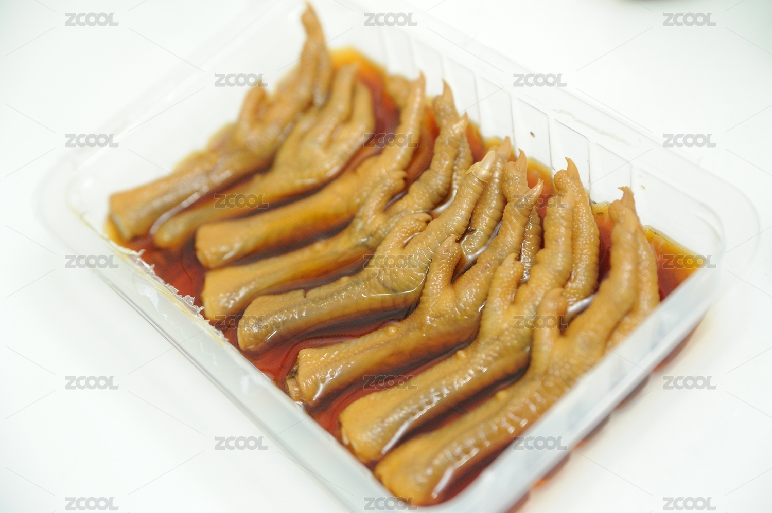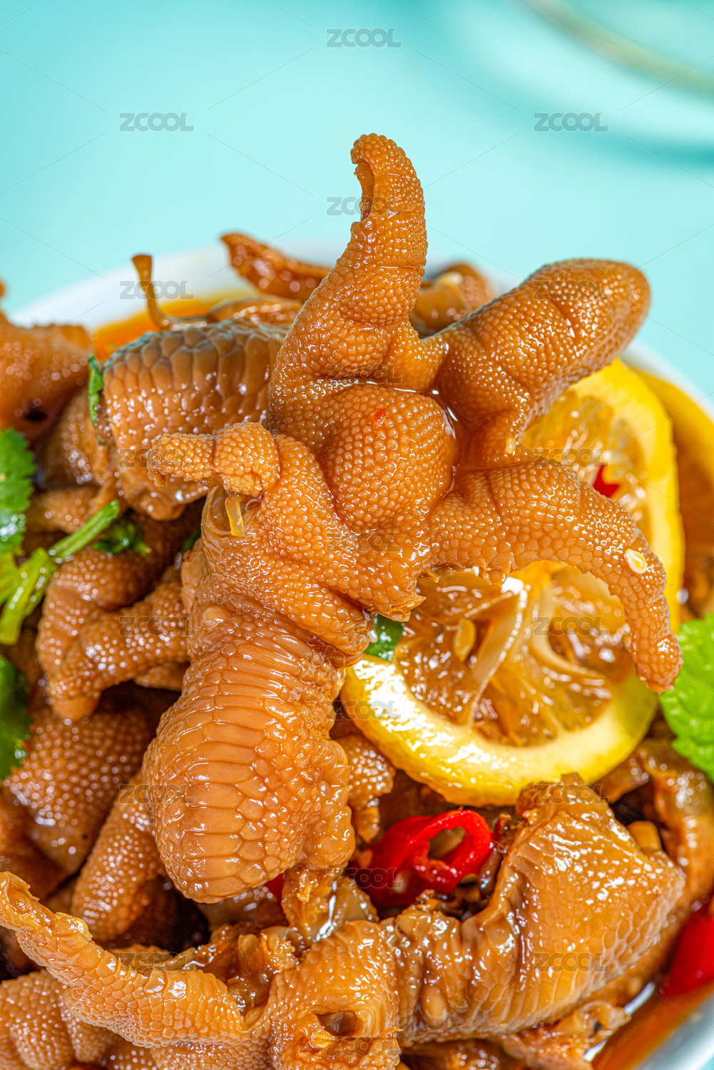 藍(lán)色背景下的風(fēng)味小食鹵味醬香雞爪