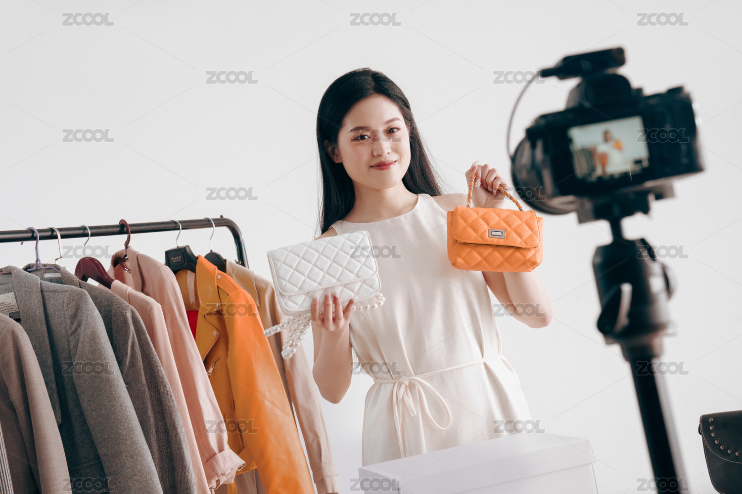 年輕女子直播賣奢侈品女包