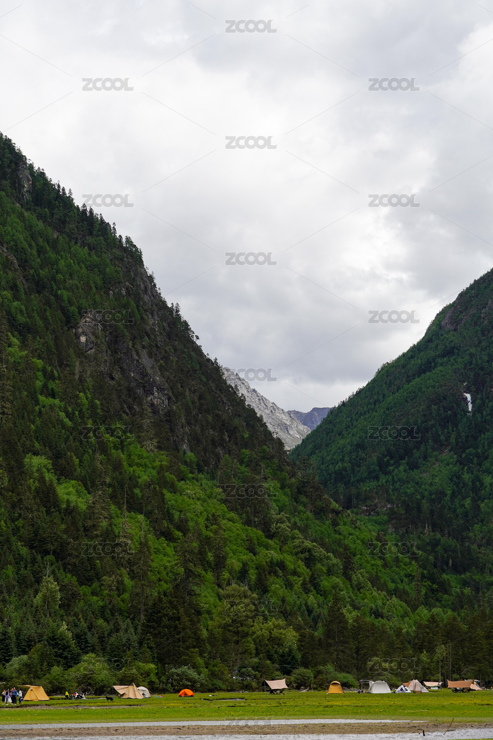 中國(guó)四川甘孜月亮湖山谷露營(yíng)地自然風(fēng)光