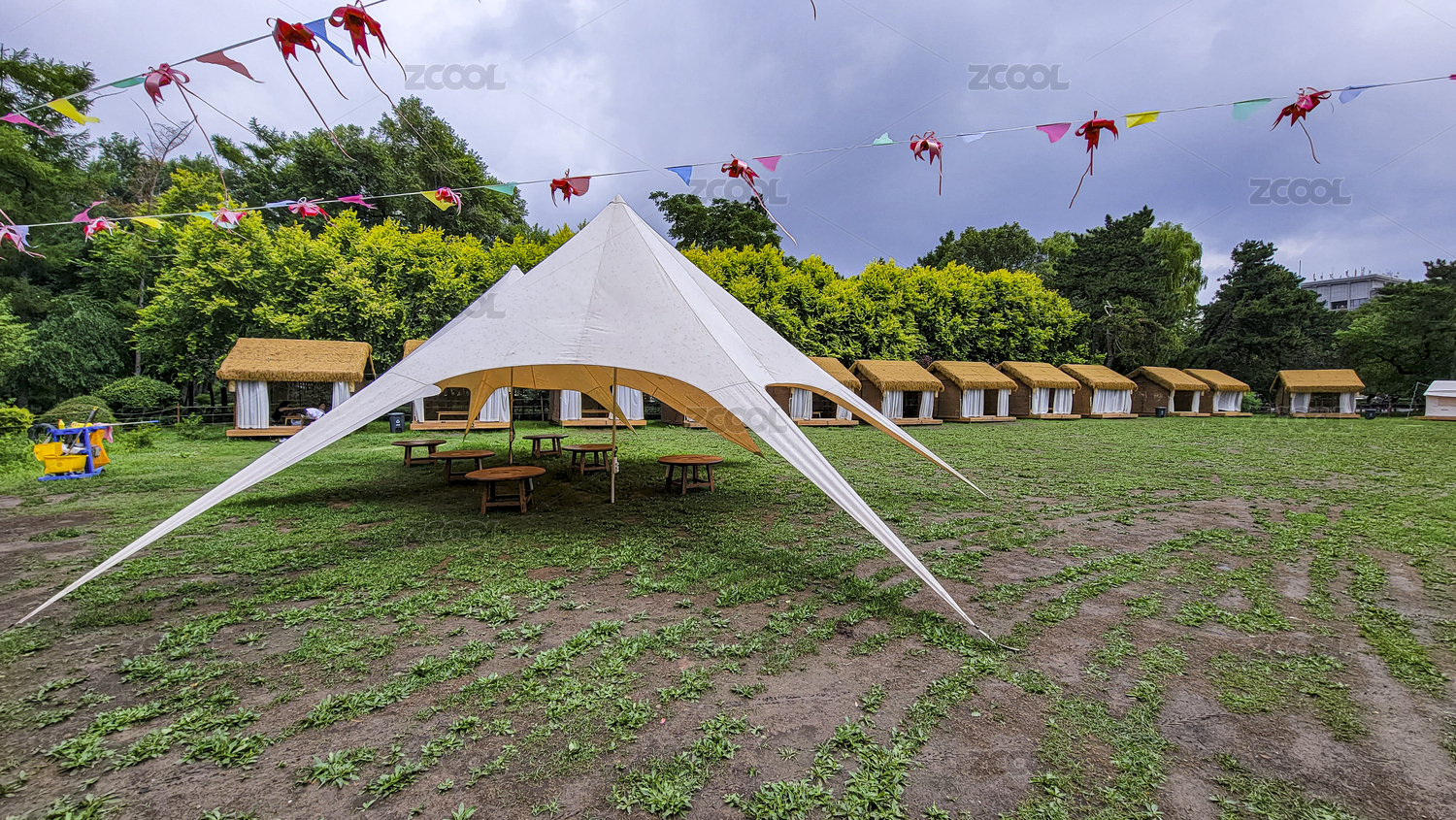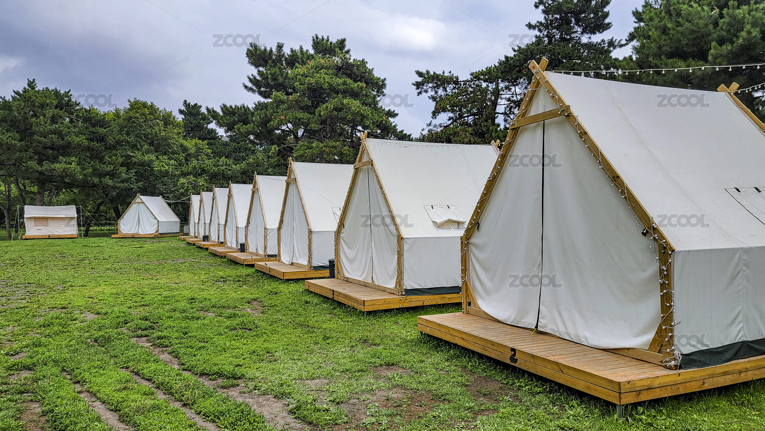 露營(yíng)地里的帳篷-夏日里的中國(guó)長(zhǎng)春南湖公園