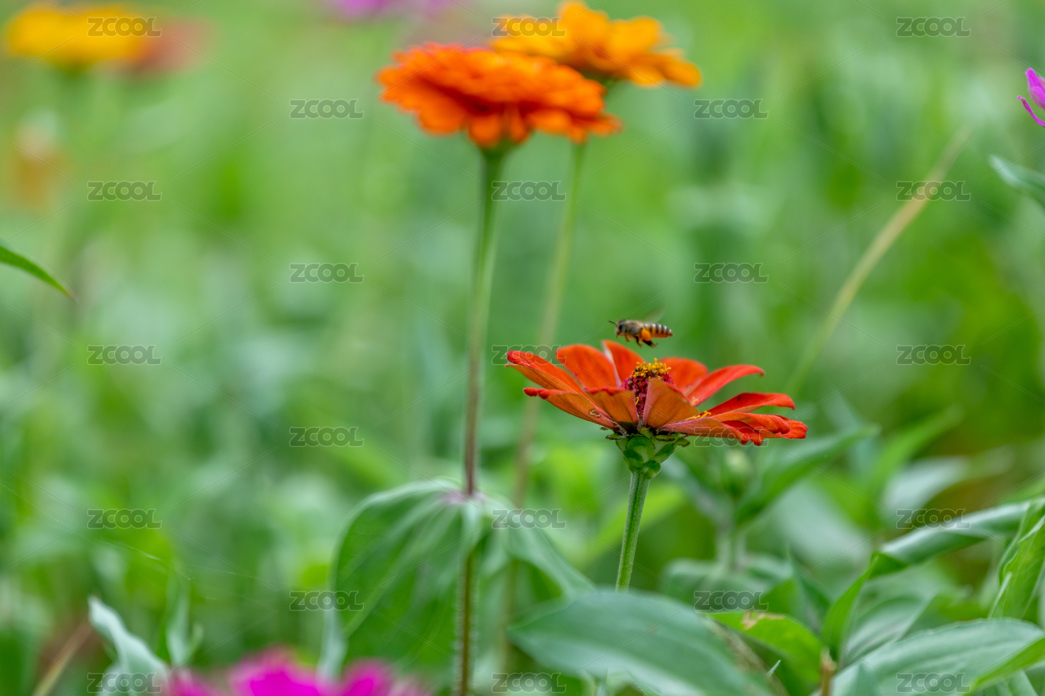 盛開的洋紅色百日草