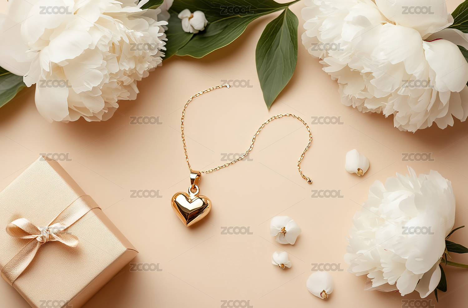 正上方拍攝的結(jié)婚戒指和心形和禮物在桌上