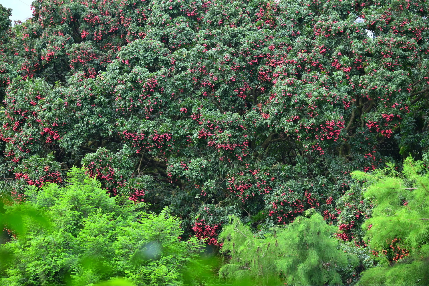 荔枝樹上結(jié)滿了紅色荔枝/廣東桂味荔枝