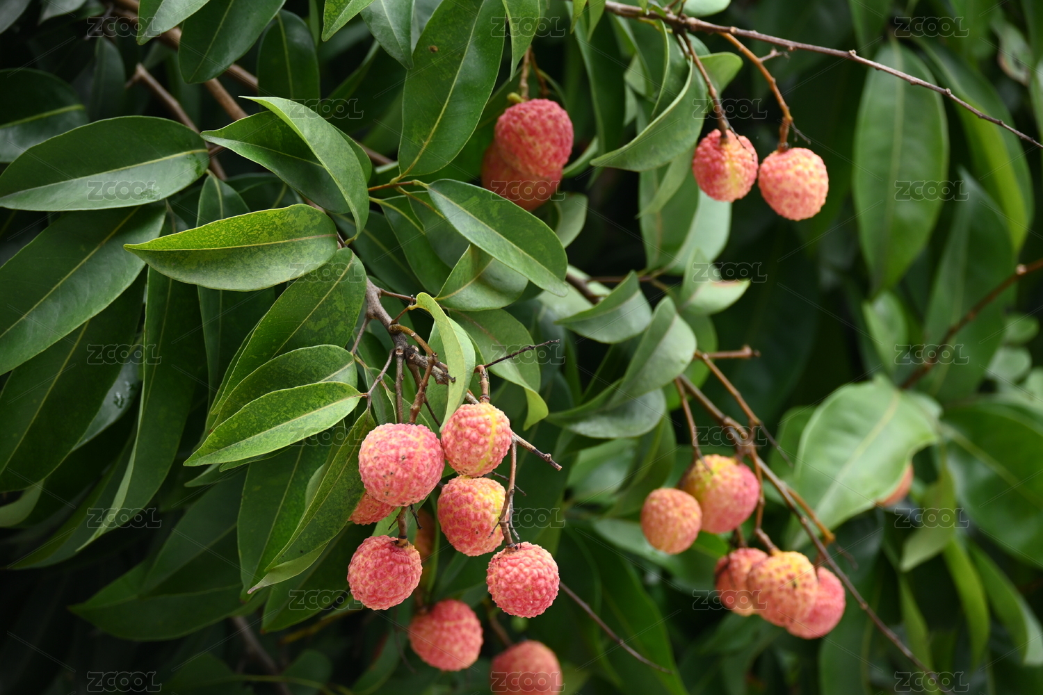 荔枝樹上成熟的紅荔枝/廣東桂味荔枝