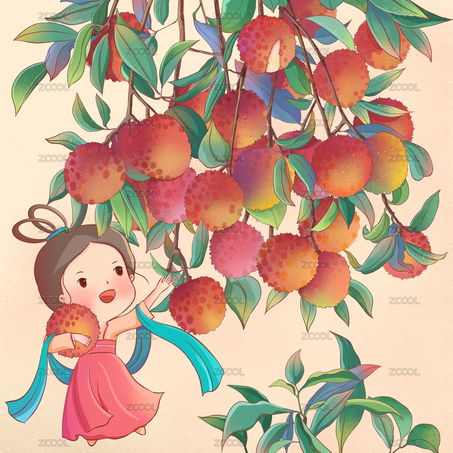 古風(fēng)女孩抱著荔枝站在荔枝樹下
