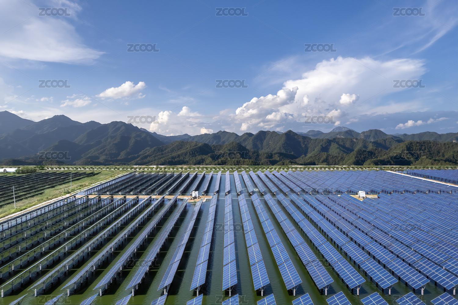 水上光伏電站太陽能電池板航拍景觀