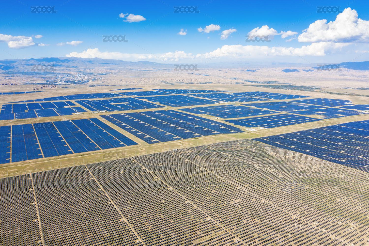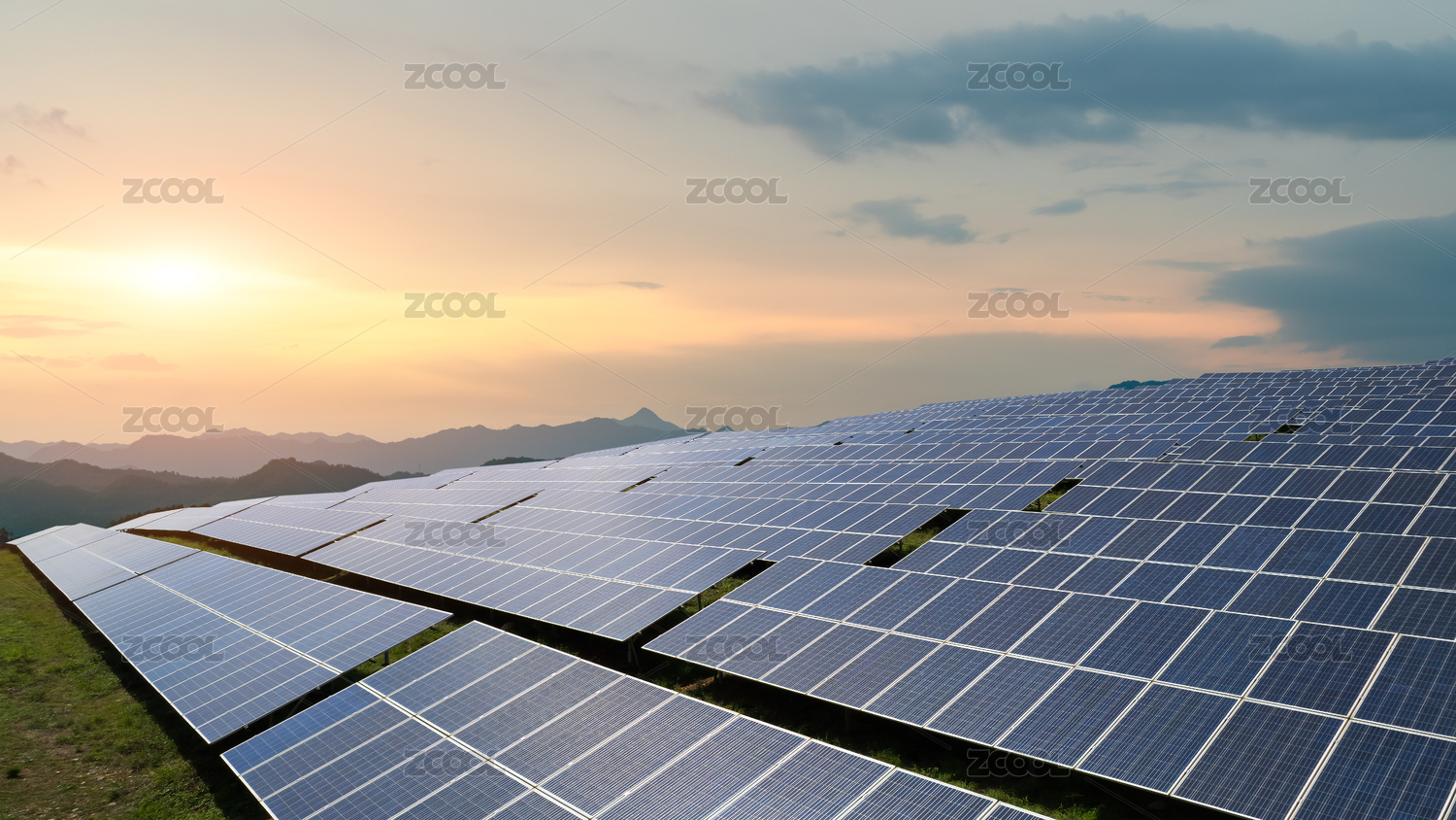 夕陽下的巨型光伏電站