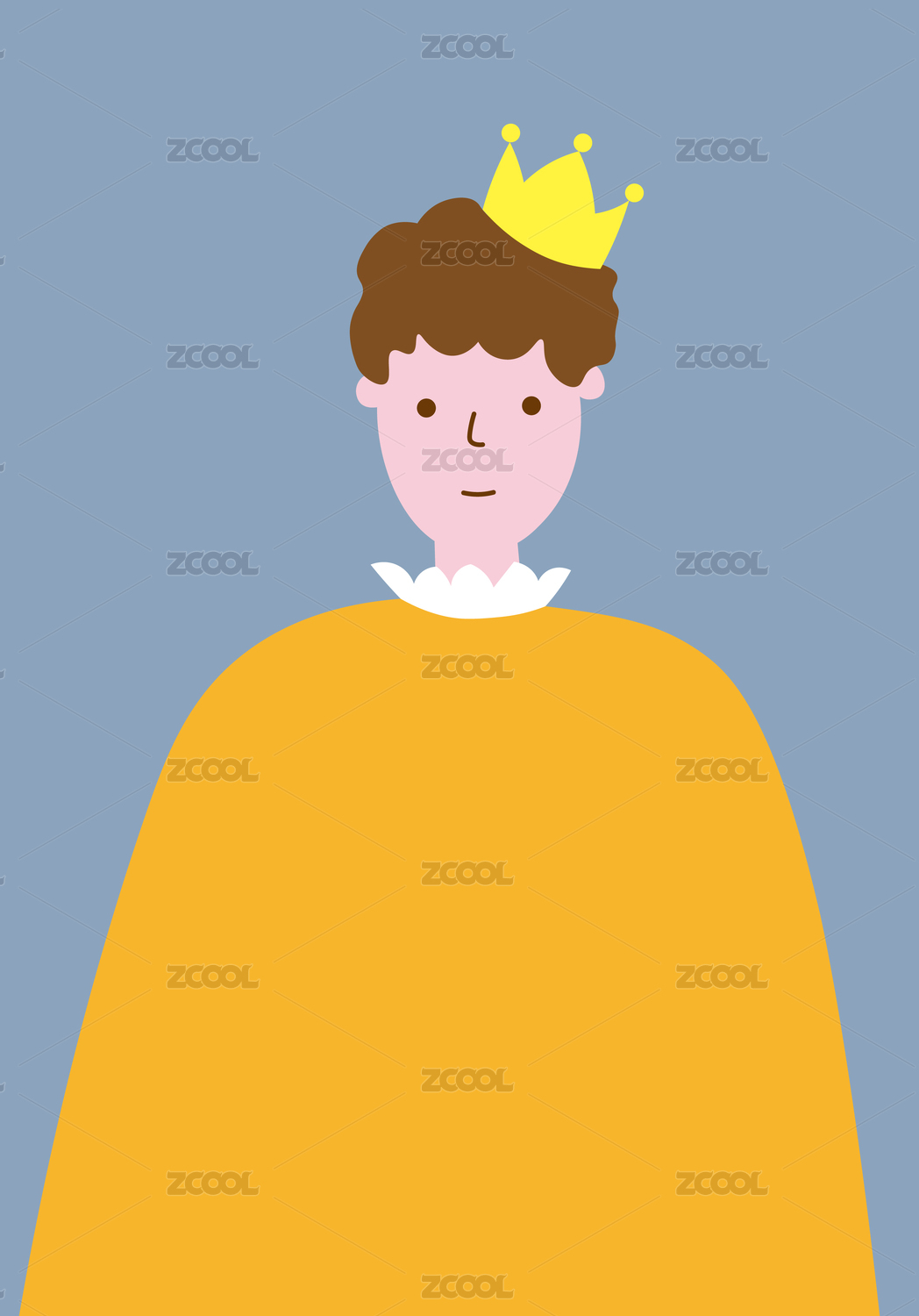 可愛的卡通國王,身穿黃衣,戴著金色王冠