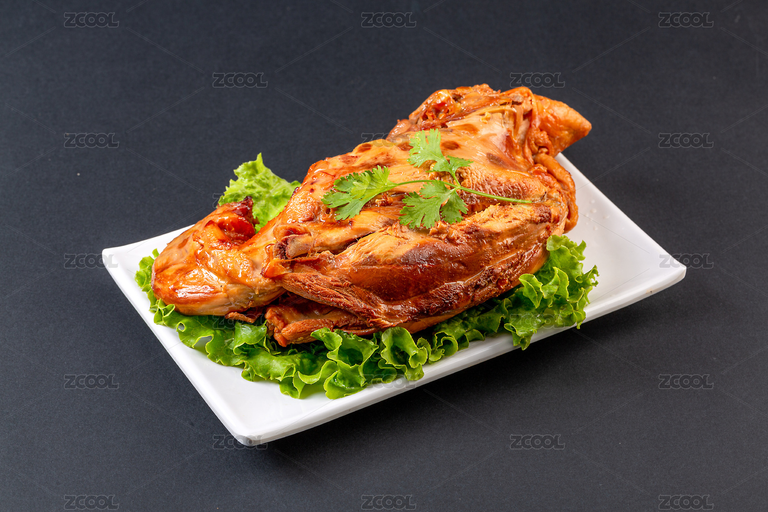白色方盤里的手撕醬鹵雞架