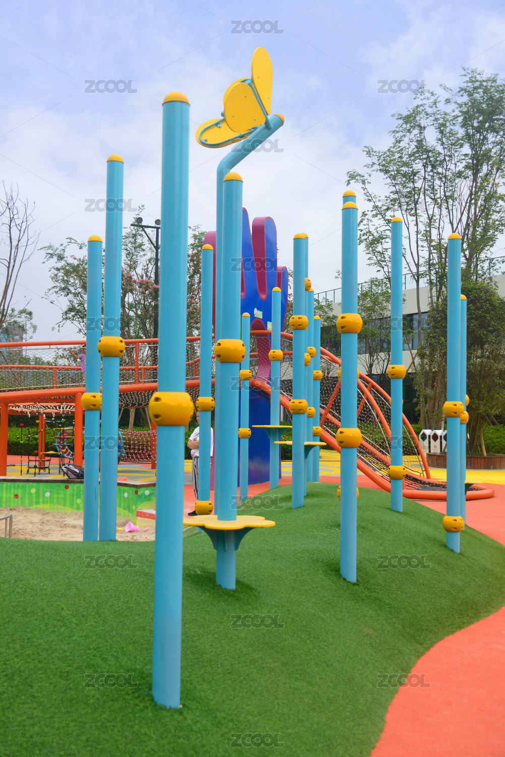 中國四川成都東風(fēng)渠綠道汽車公園兒童游樂攀爬桿