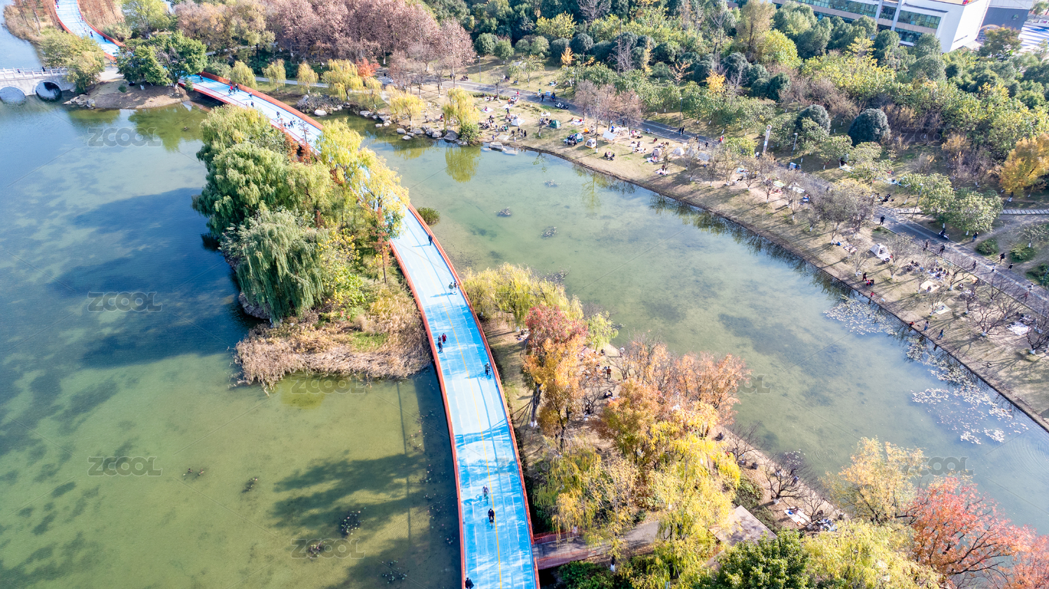 成都錦城公園天府綠道秋季晴天俯拍