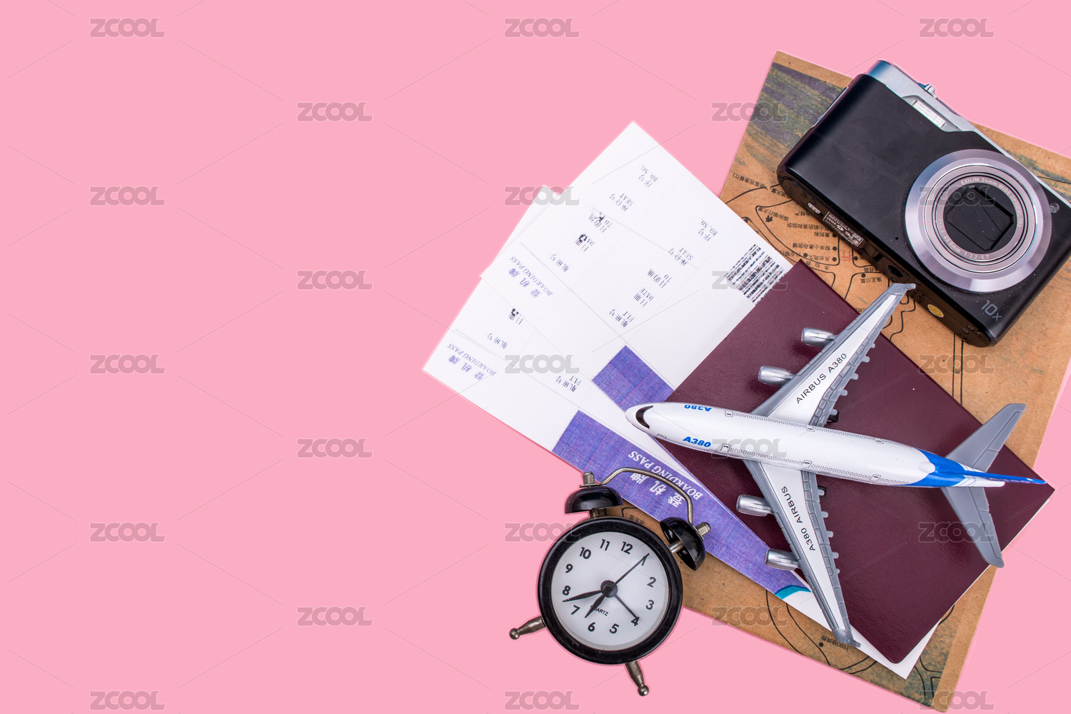 行李箱和相機(jī)等旅行物品
