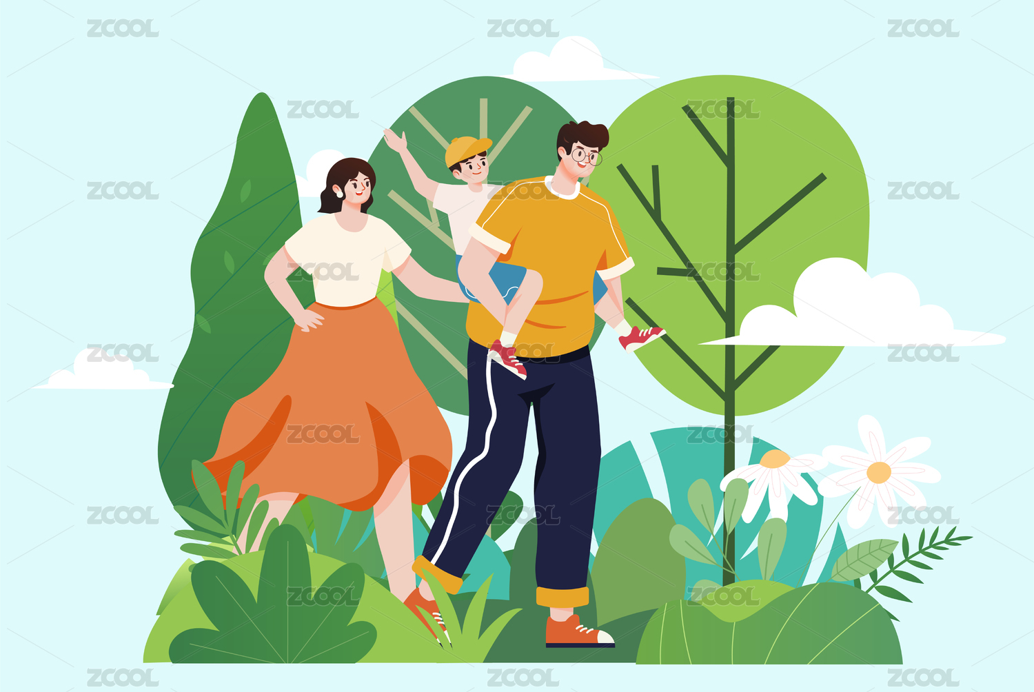 夏日親子旅行插畫