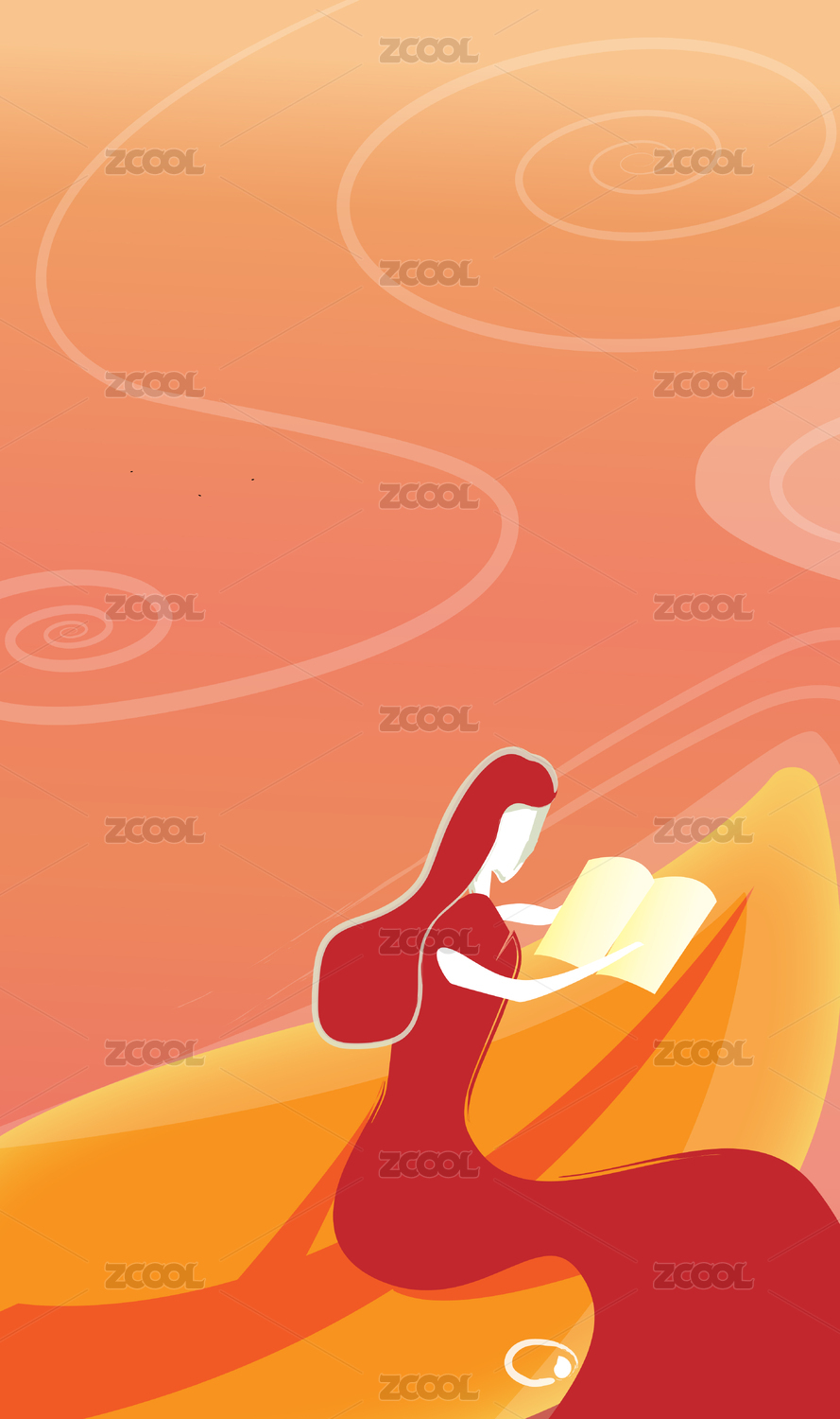 旗袍女人雨具悠閑坐在樹(shù)葉上看書(shū)還有音樂(lè)聽(tīng)