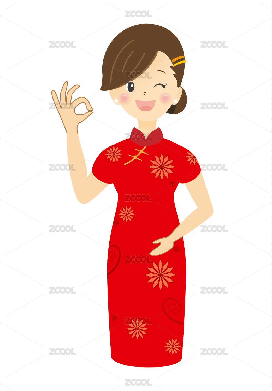 旗袍女人 手勢(shì)贊動(dòng)作卡通畫(huà)