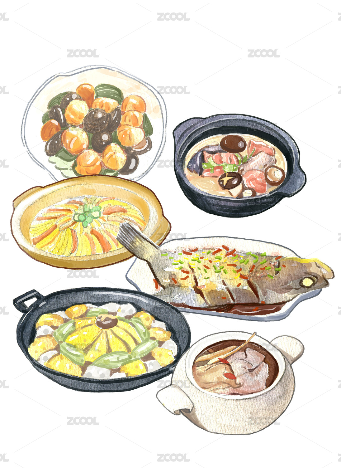 水彩美食插畫(huà)系列之徽菜