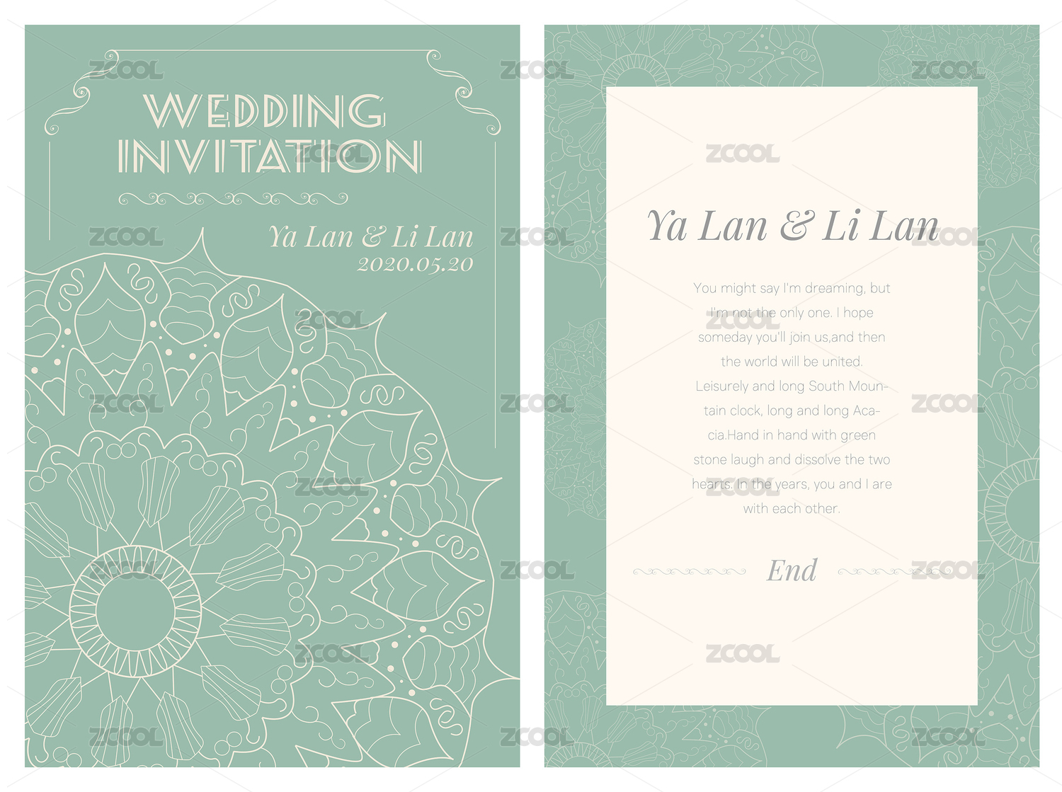 唯美綠色淡雅小清新婚禮邀請函