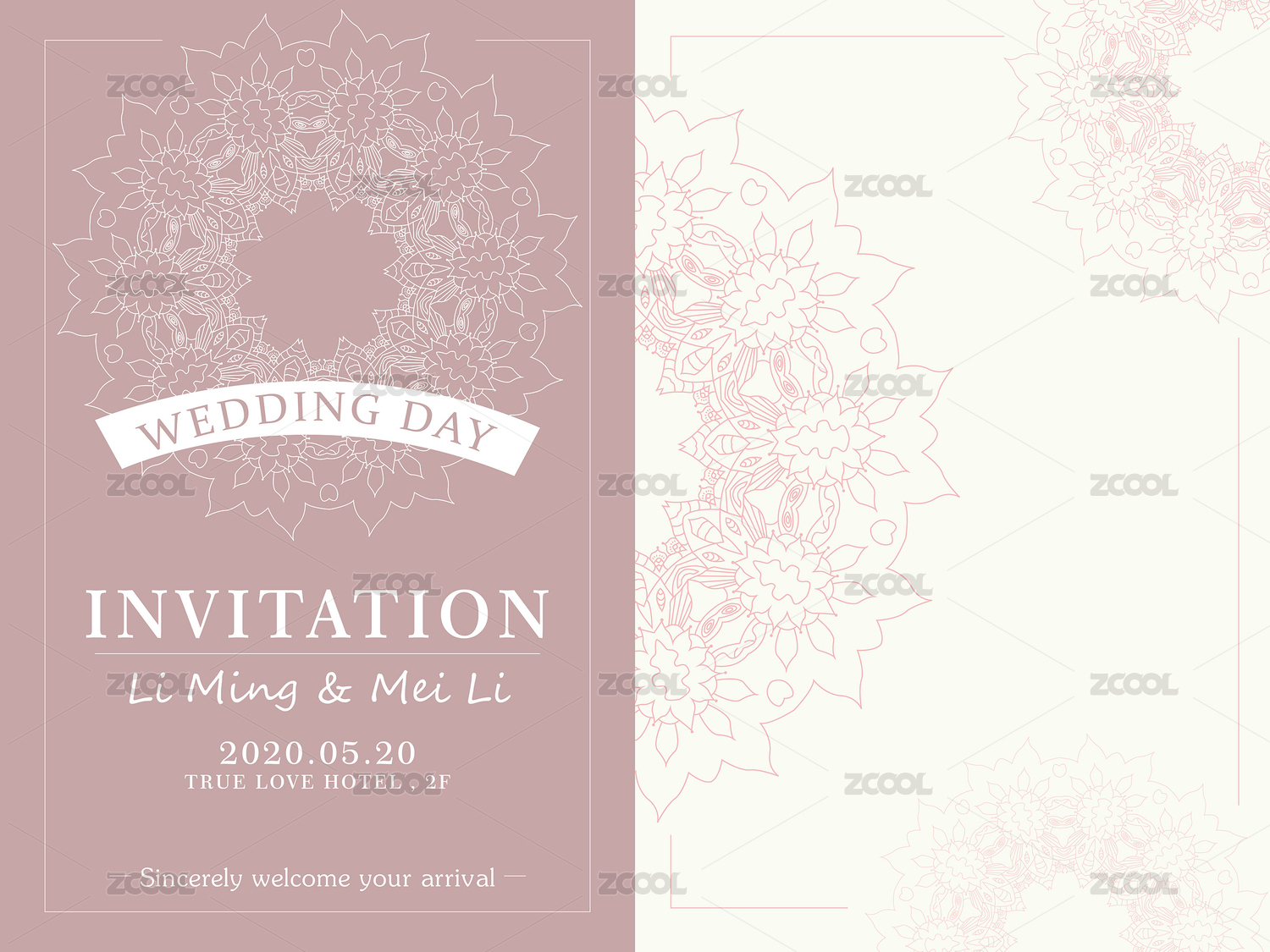 粉色唯美花紋婚禮邀請函