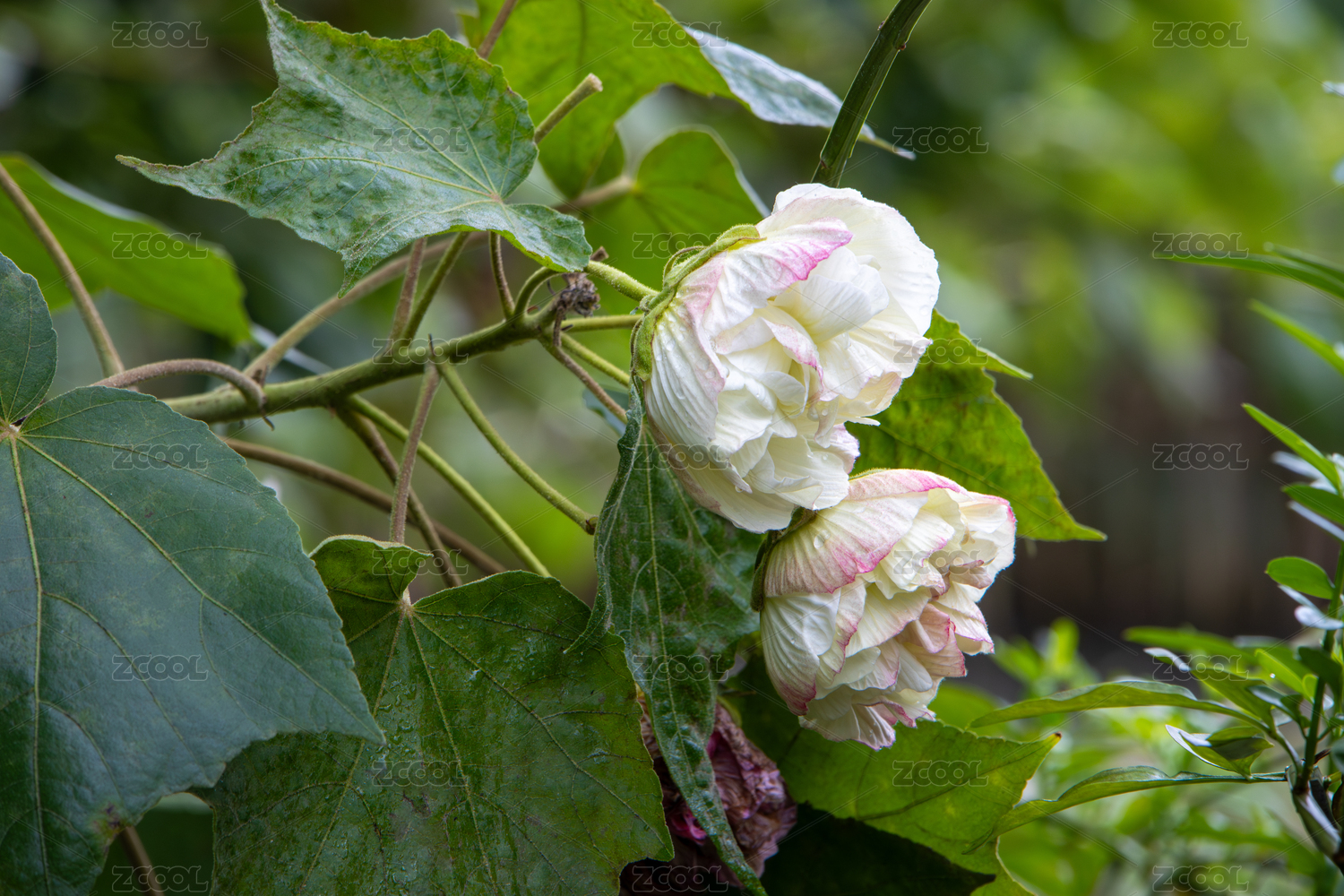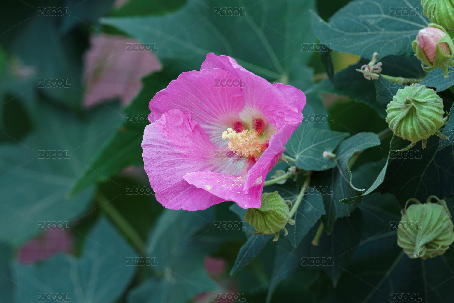 綠葉中的木芙蓉花
