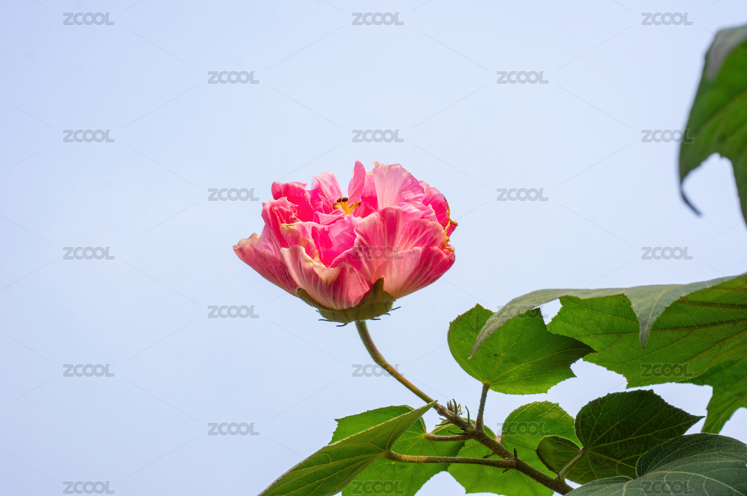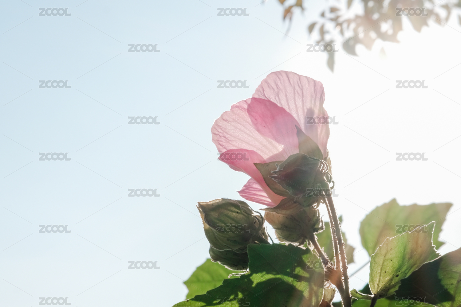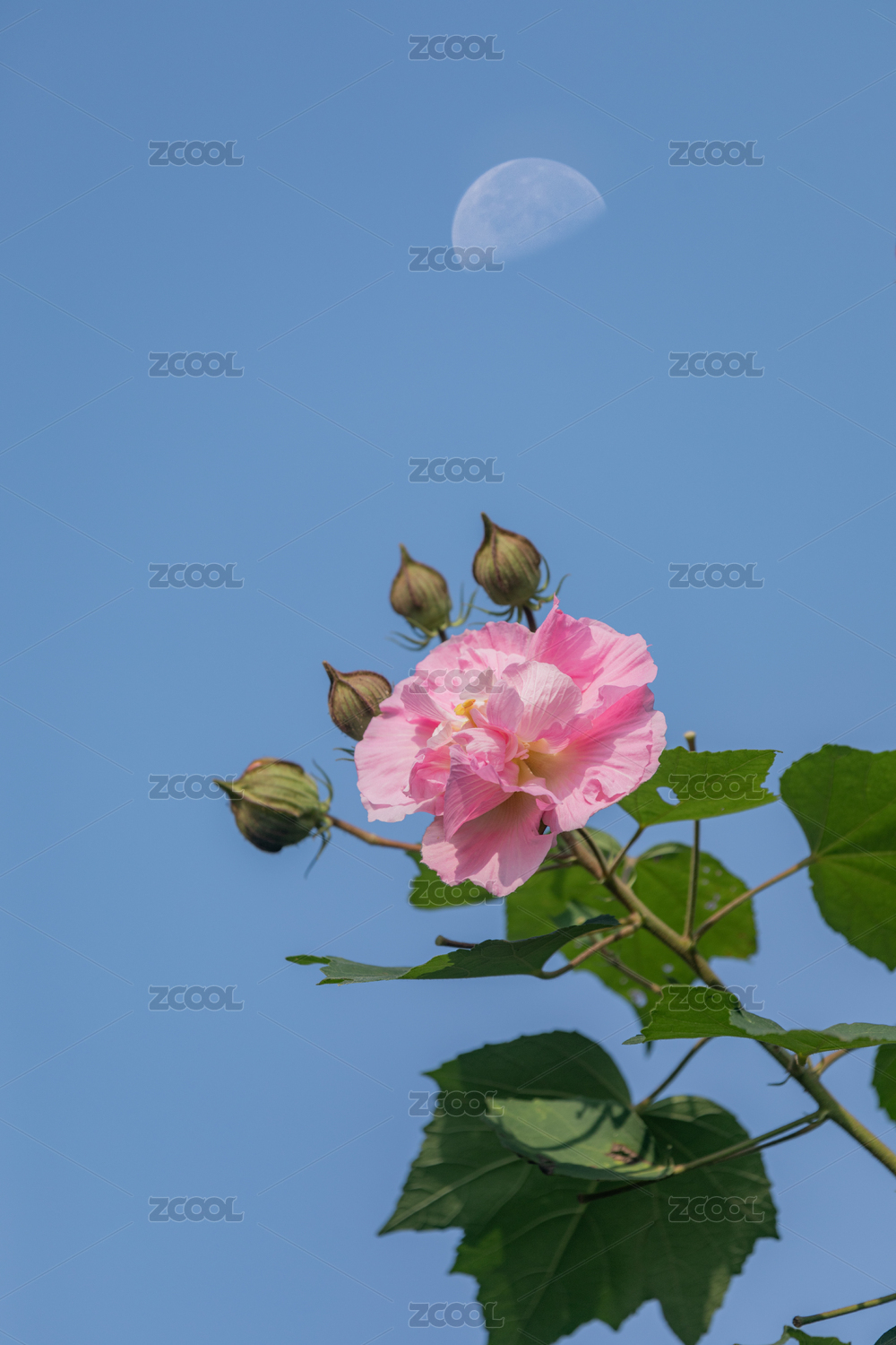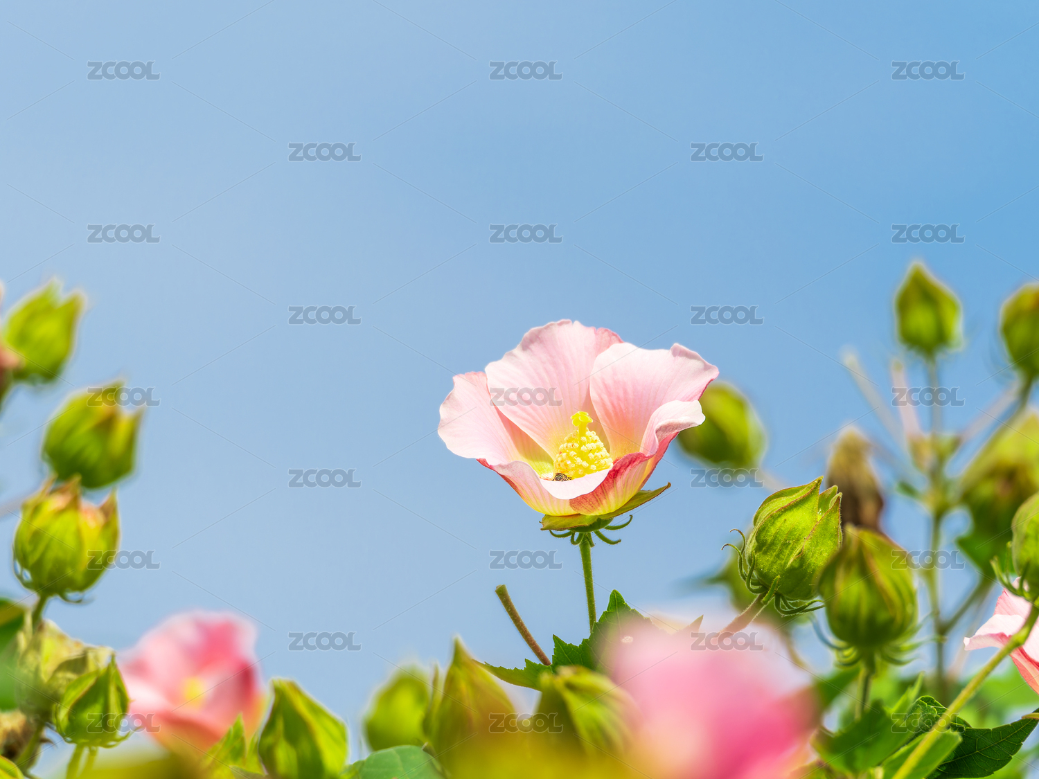藍天映襯下的粉色木芙蓉