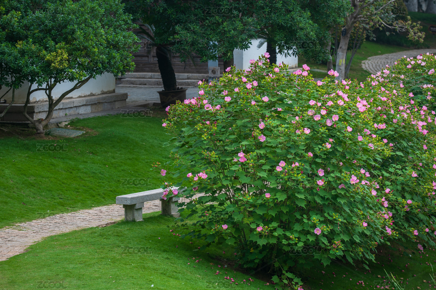 春暖花開,公園里盛開的木芙蓉