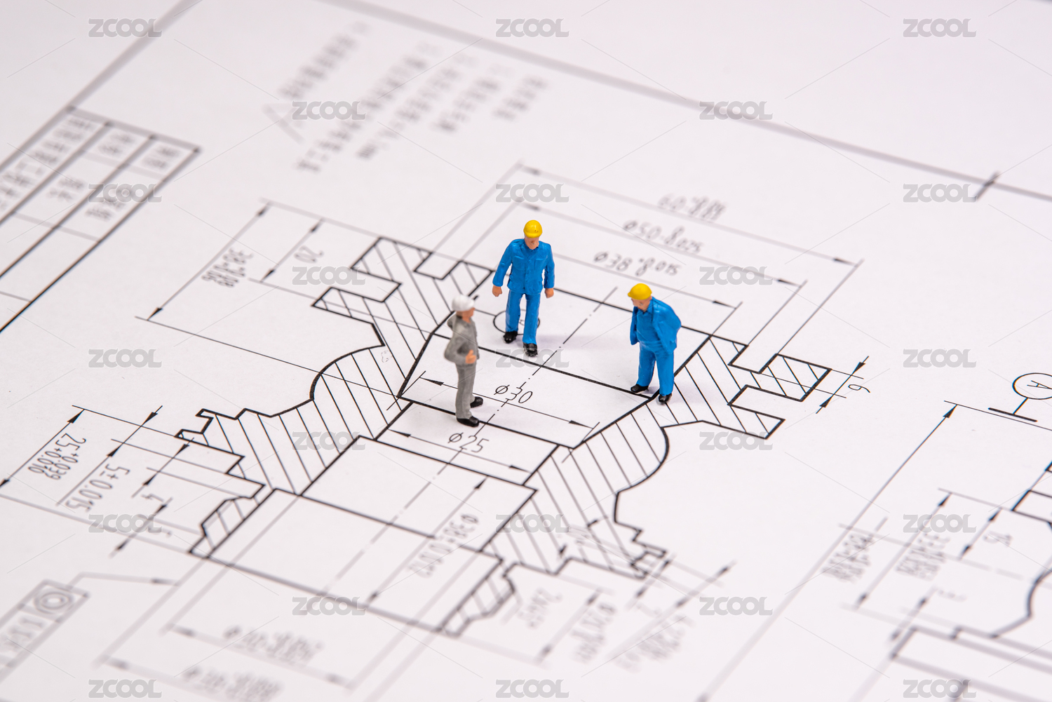 工程機(jī)械設(shè)計(jì)圖紙上的工人模型