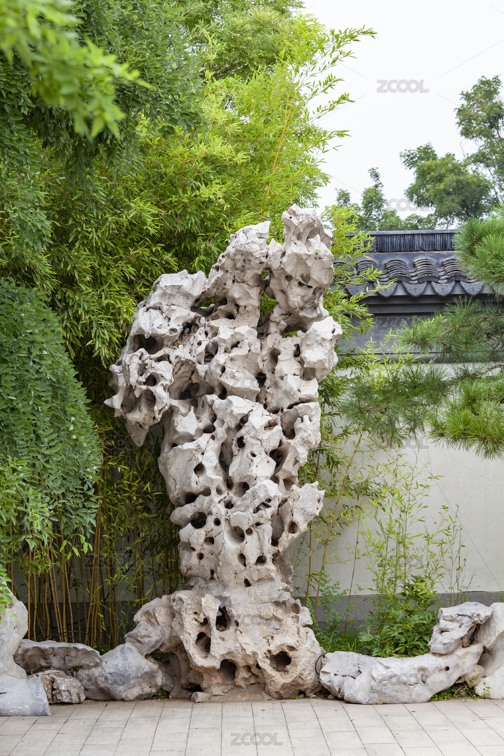園林景觀建筑里的假山石與竹子