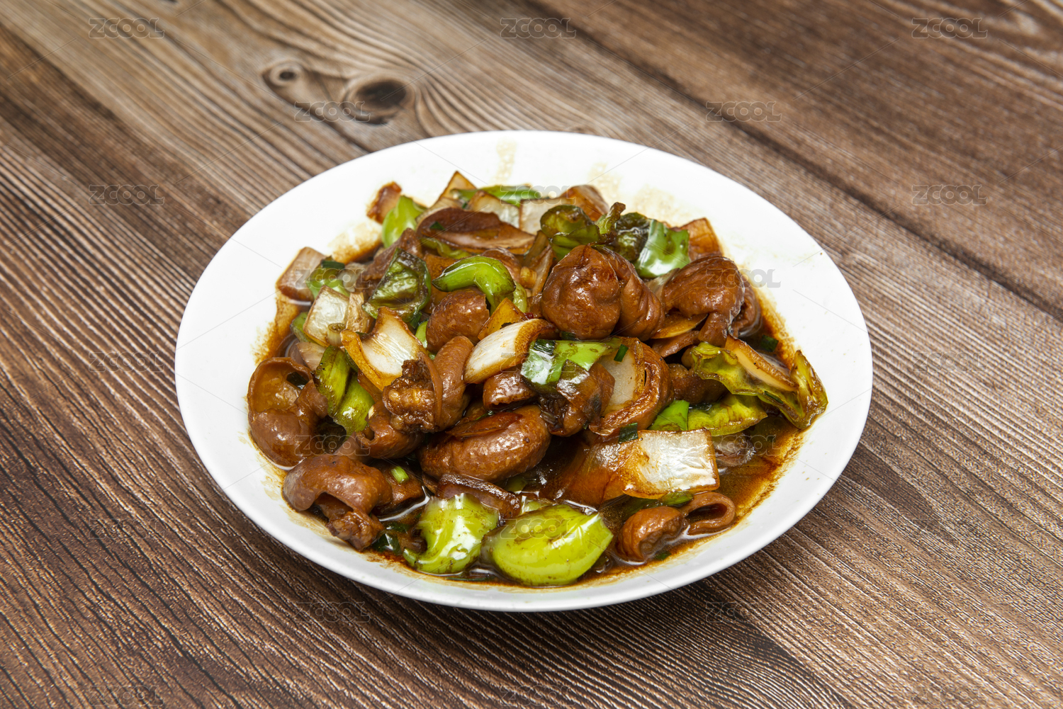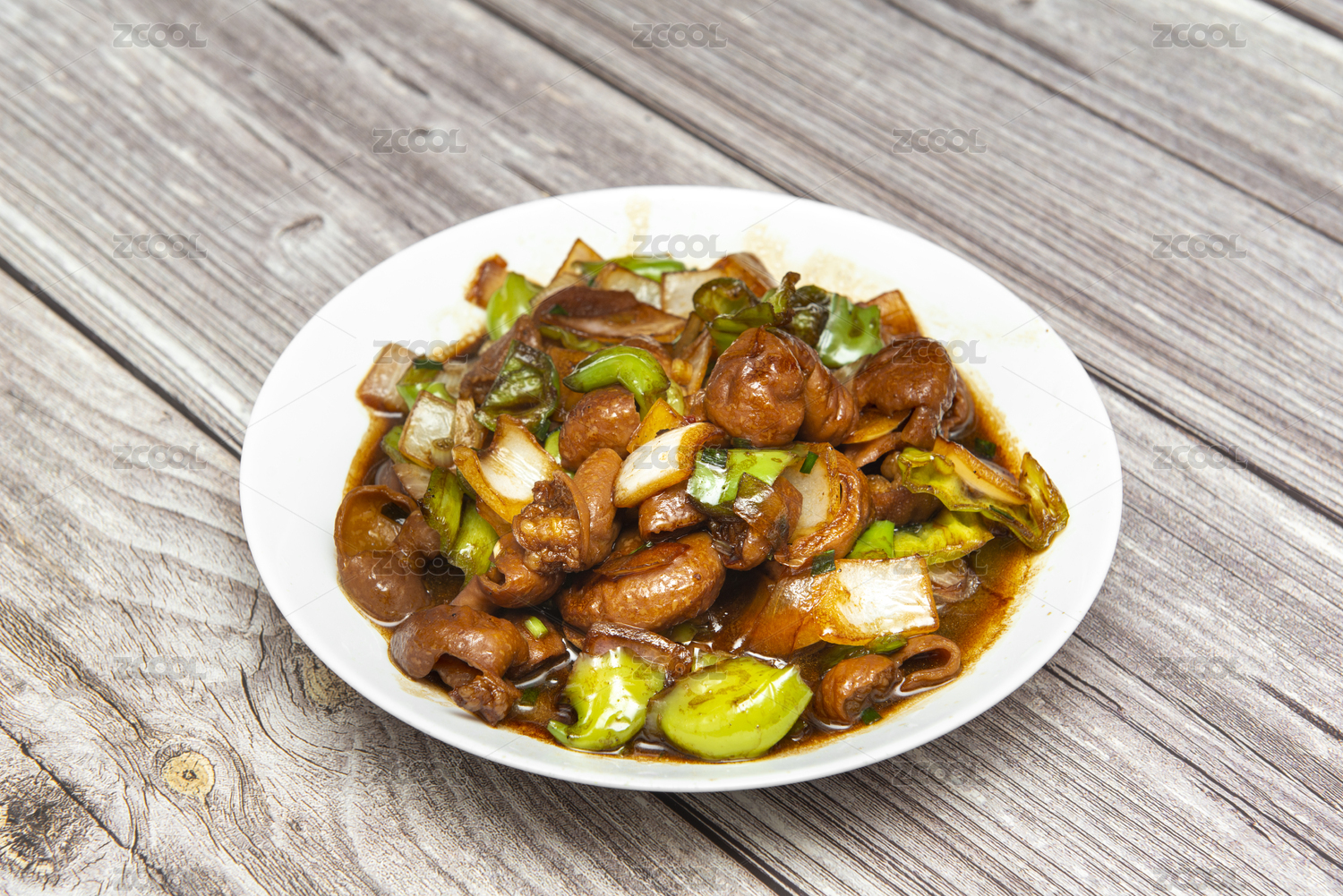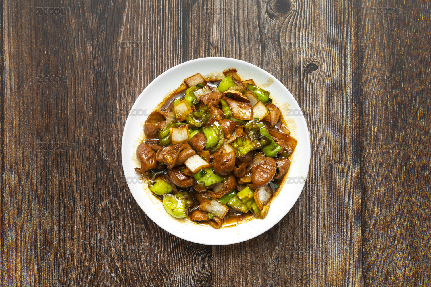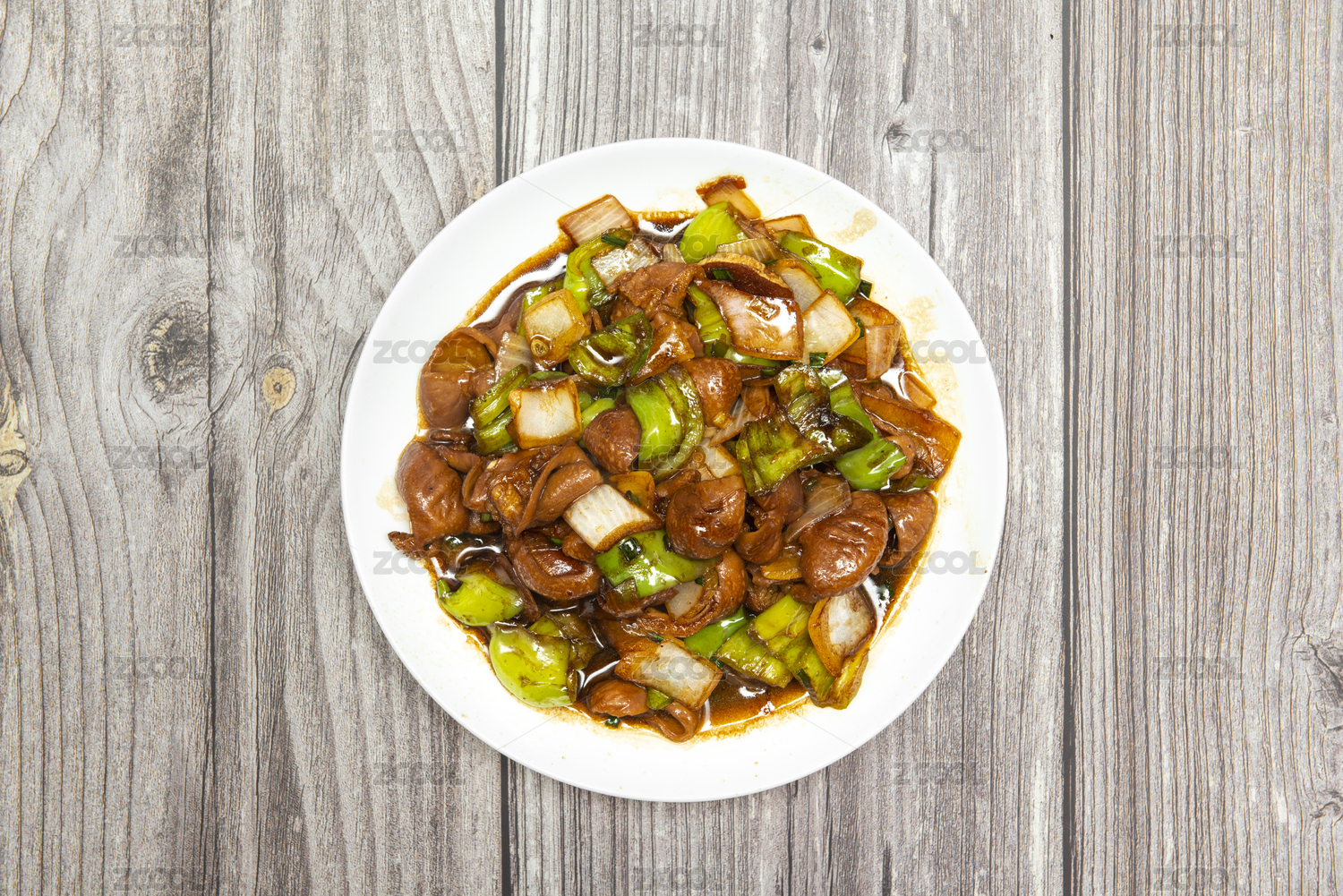 木質(zhì)的菜板子上面放著一堆煙熏臘豬大腸