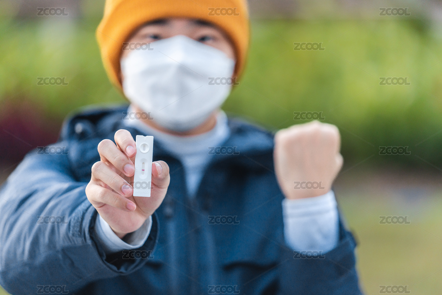 亞洲男性手持陰性抗原檢測結(jié)果