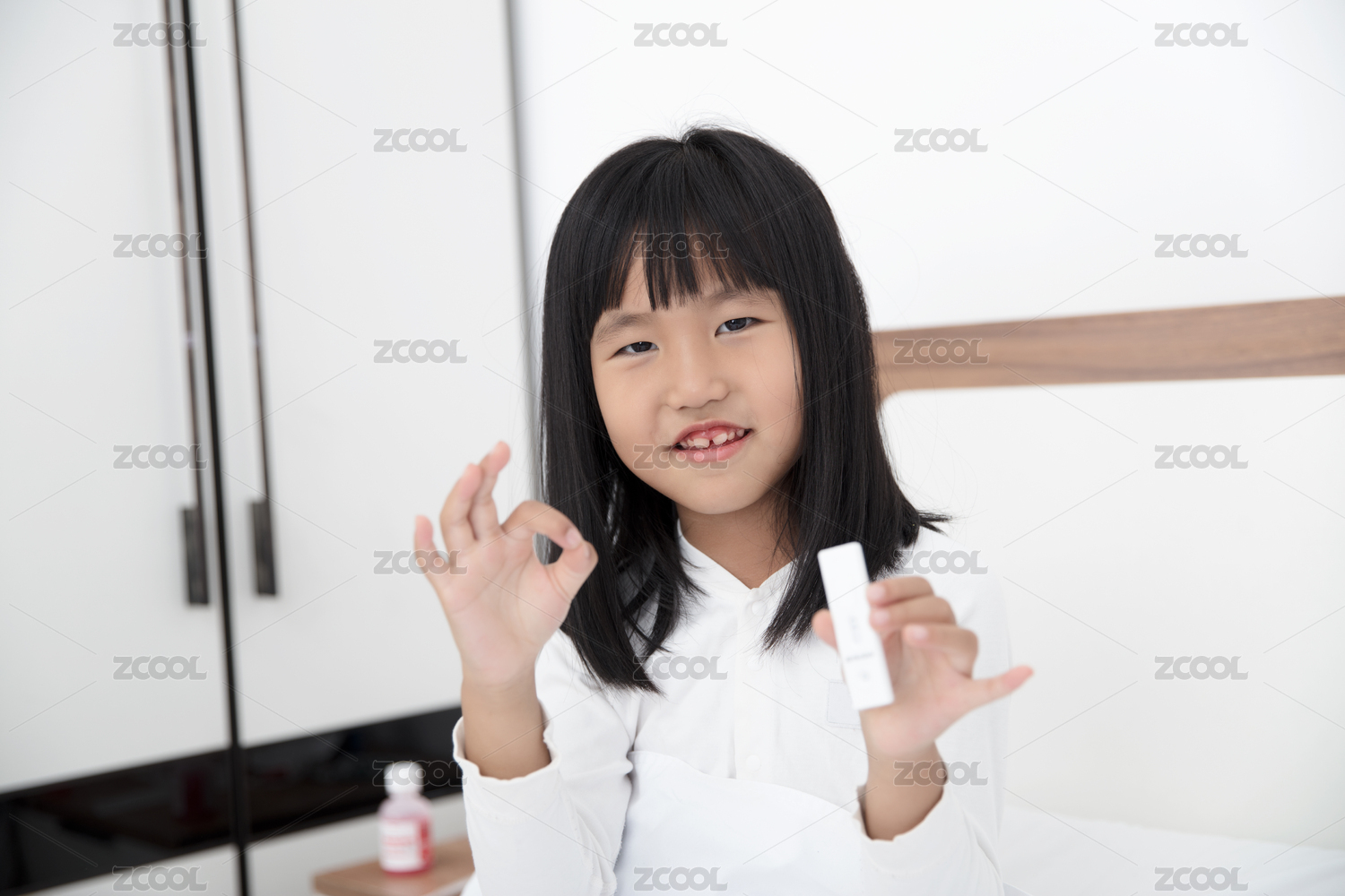 手拿抗原的黃皮膚兒童