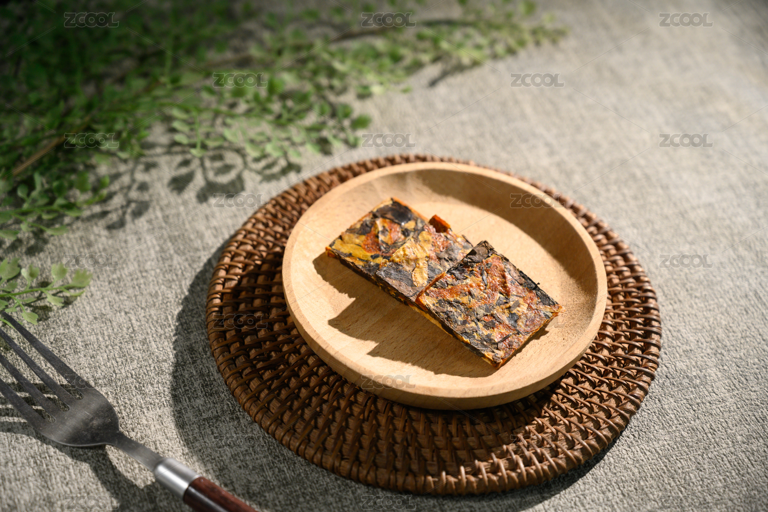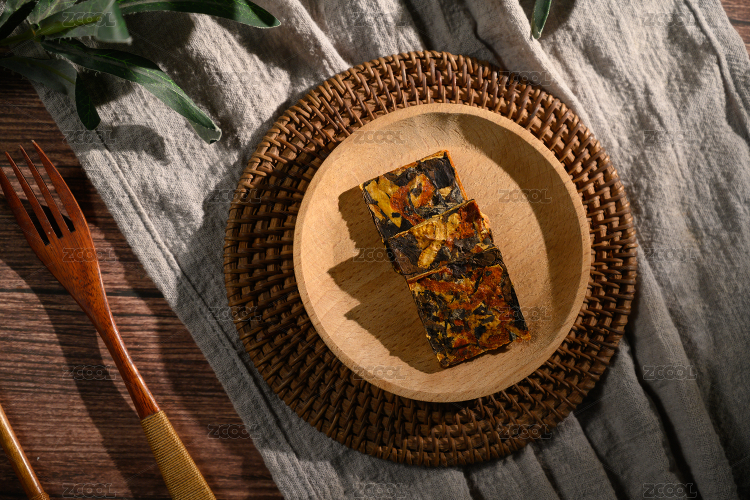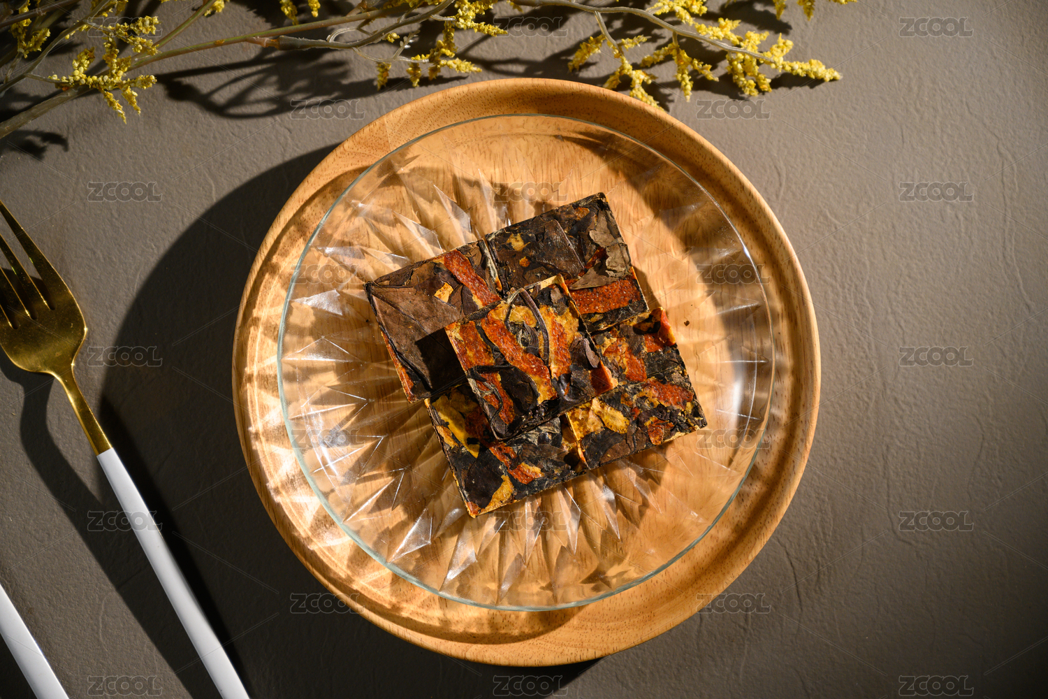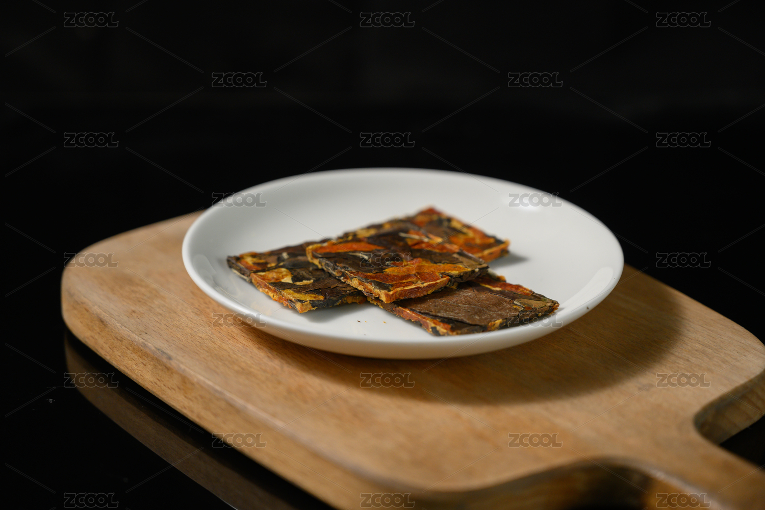 桌面上的盤子里的美味可口的陳皮白茶塊