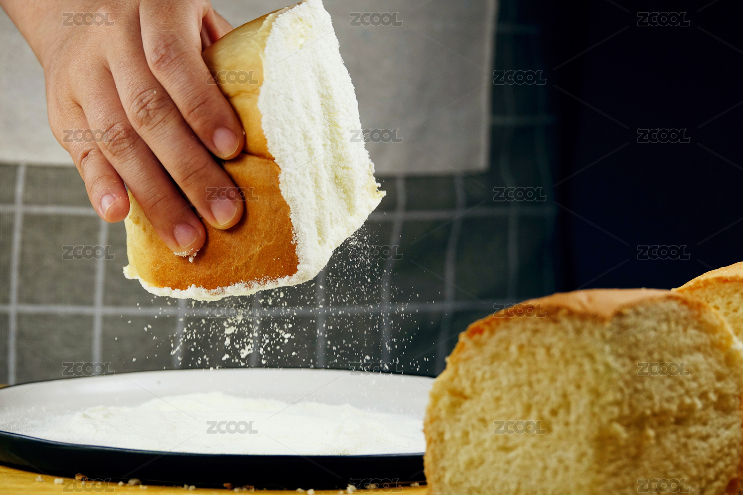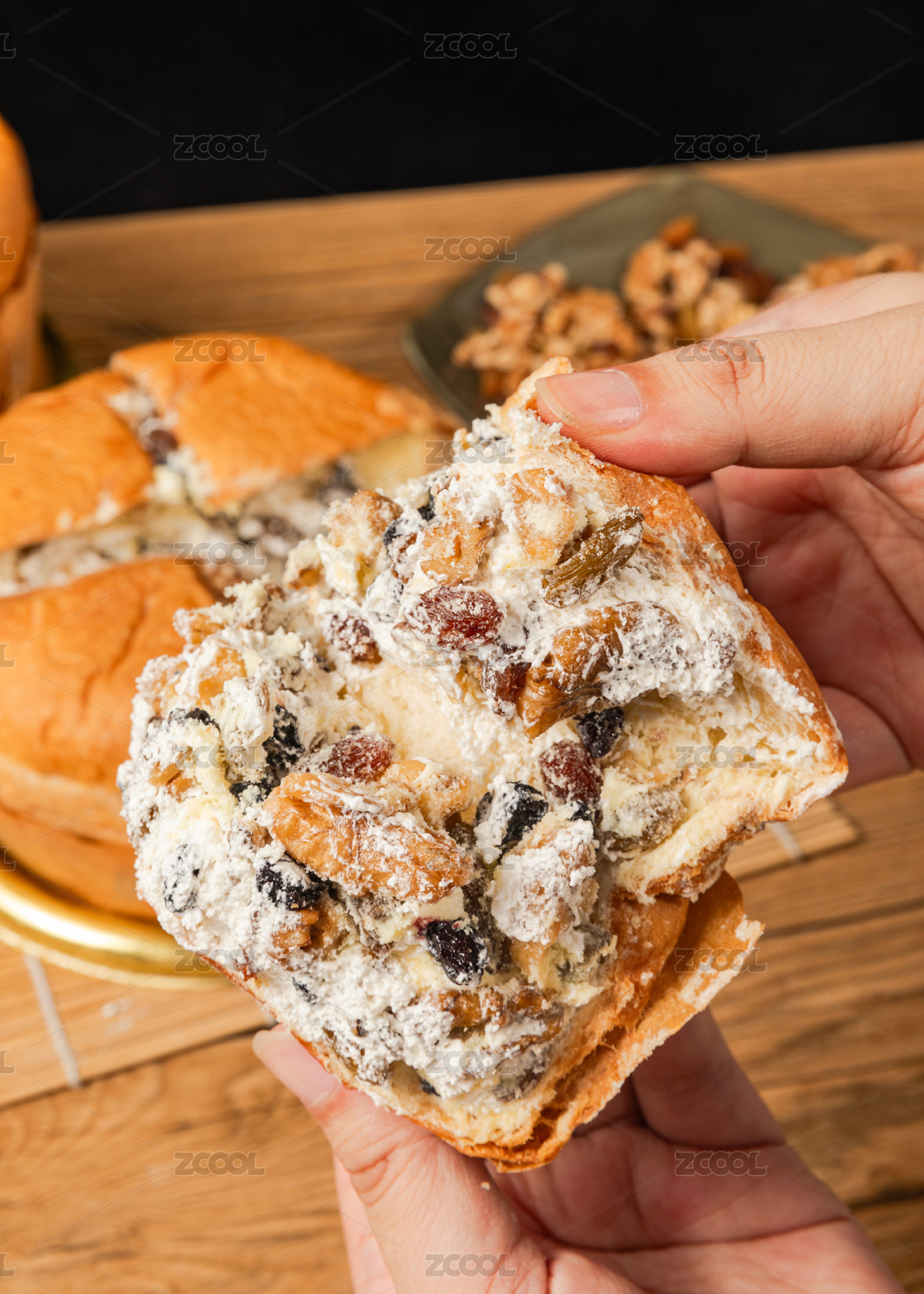 手拿切開的新疆奶酪面包