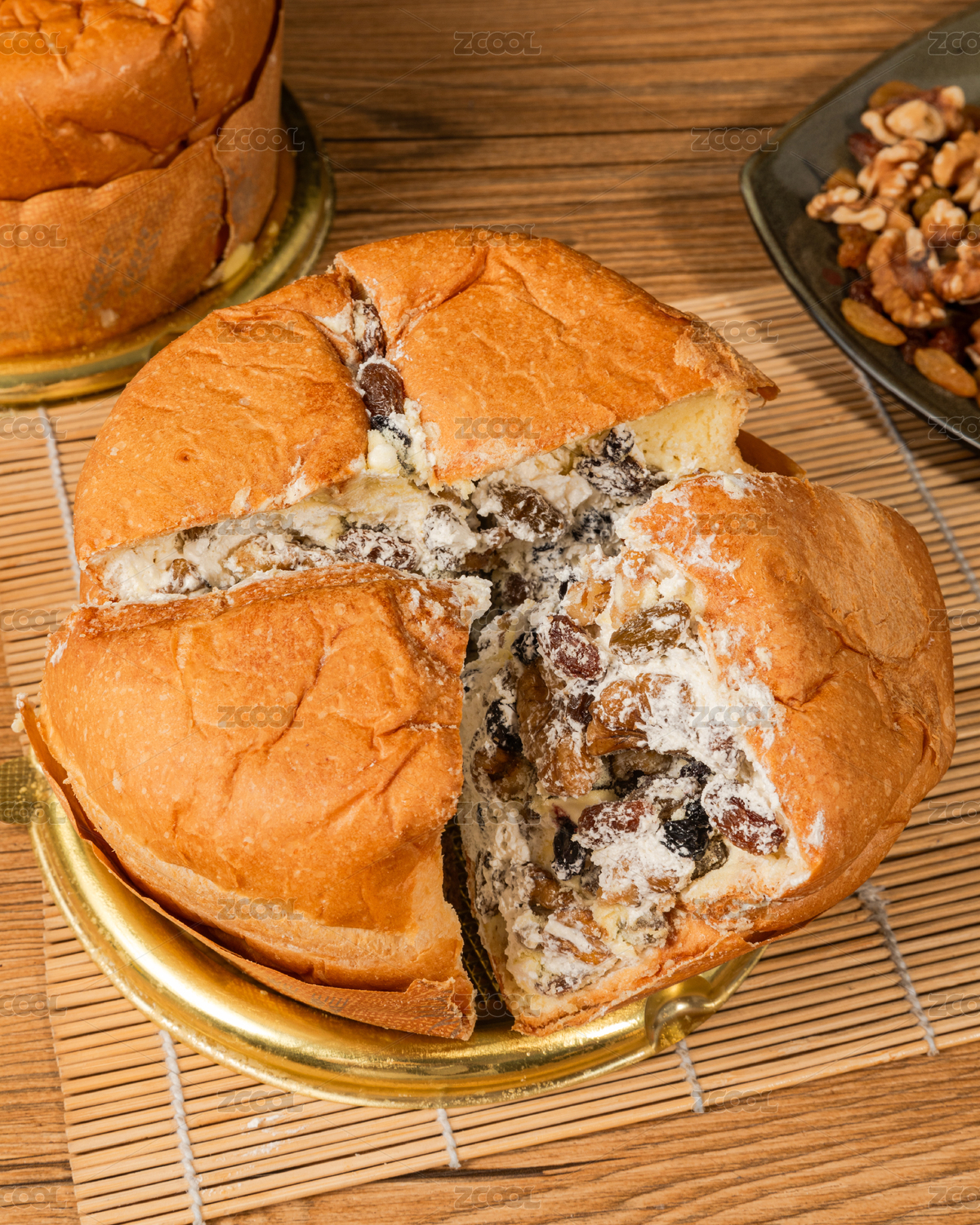 放在盤子中切開的新疆奶酪面包