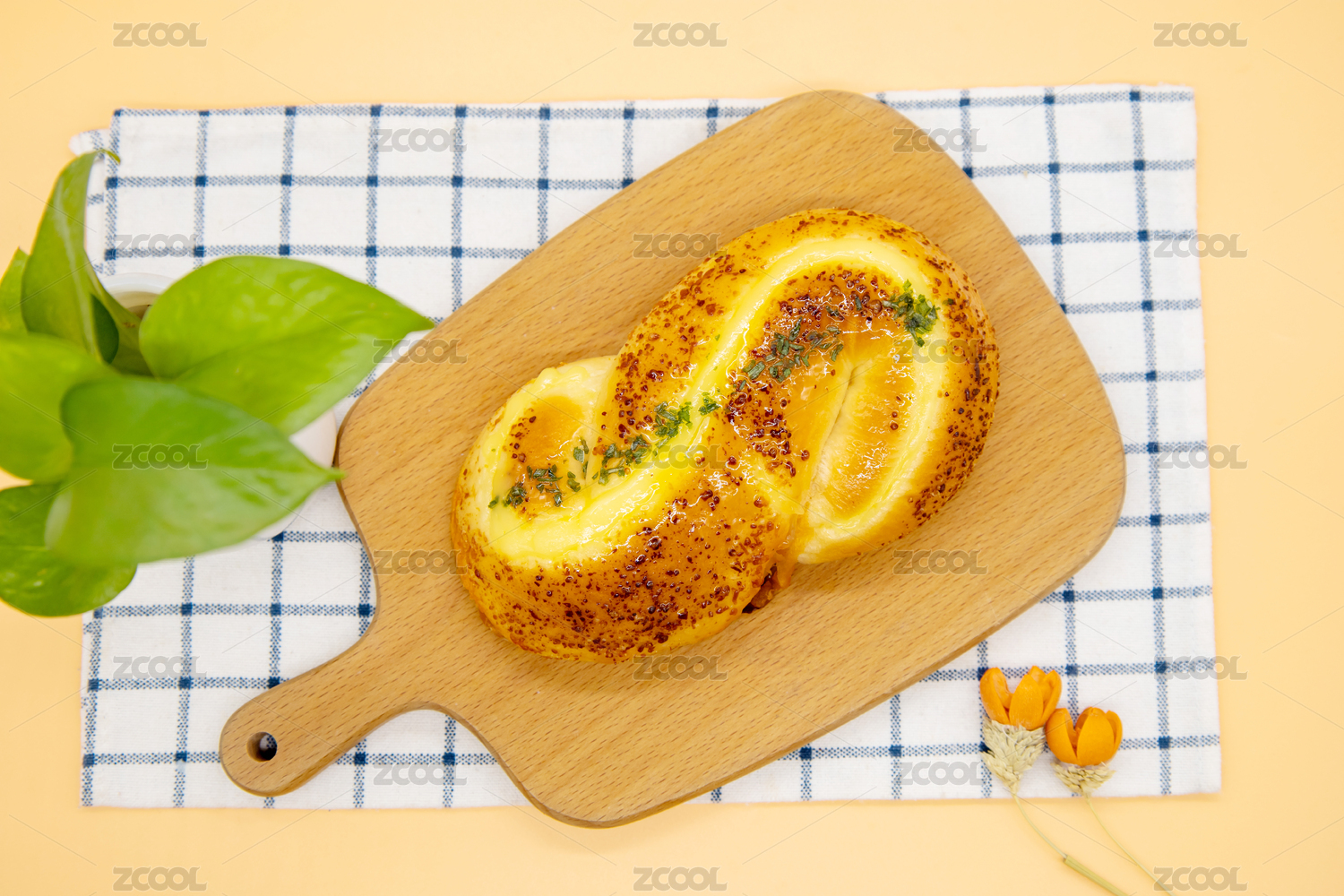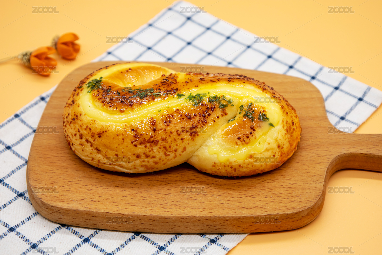 橙色背景烘焙美食芝士奶酪面包