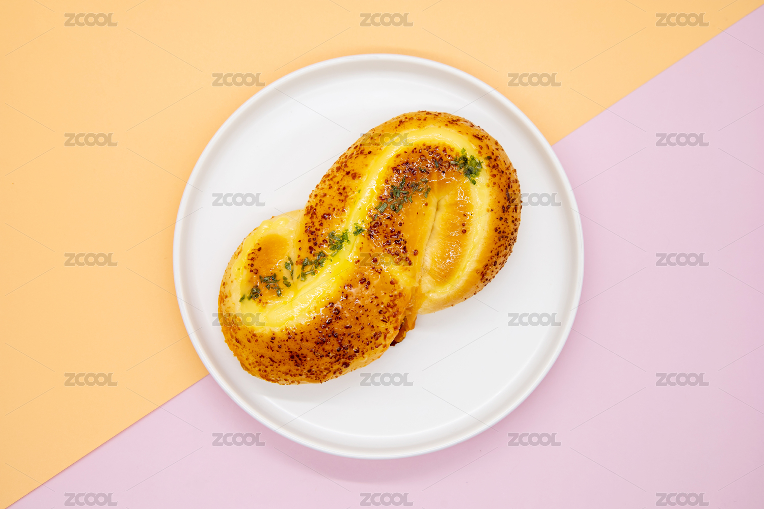 撞色背景烘焙美食芝士奶酪面包