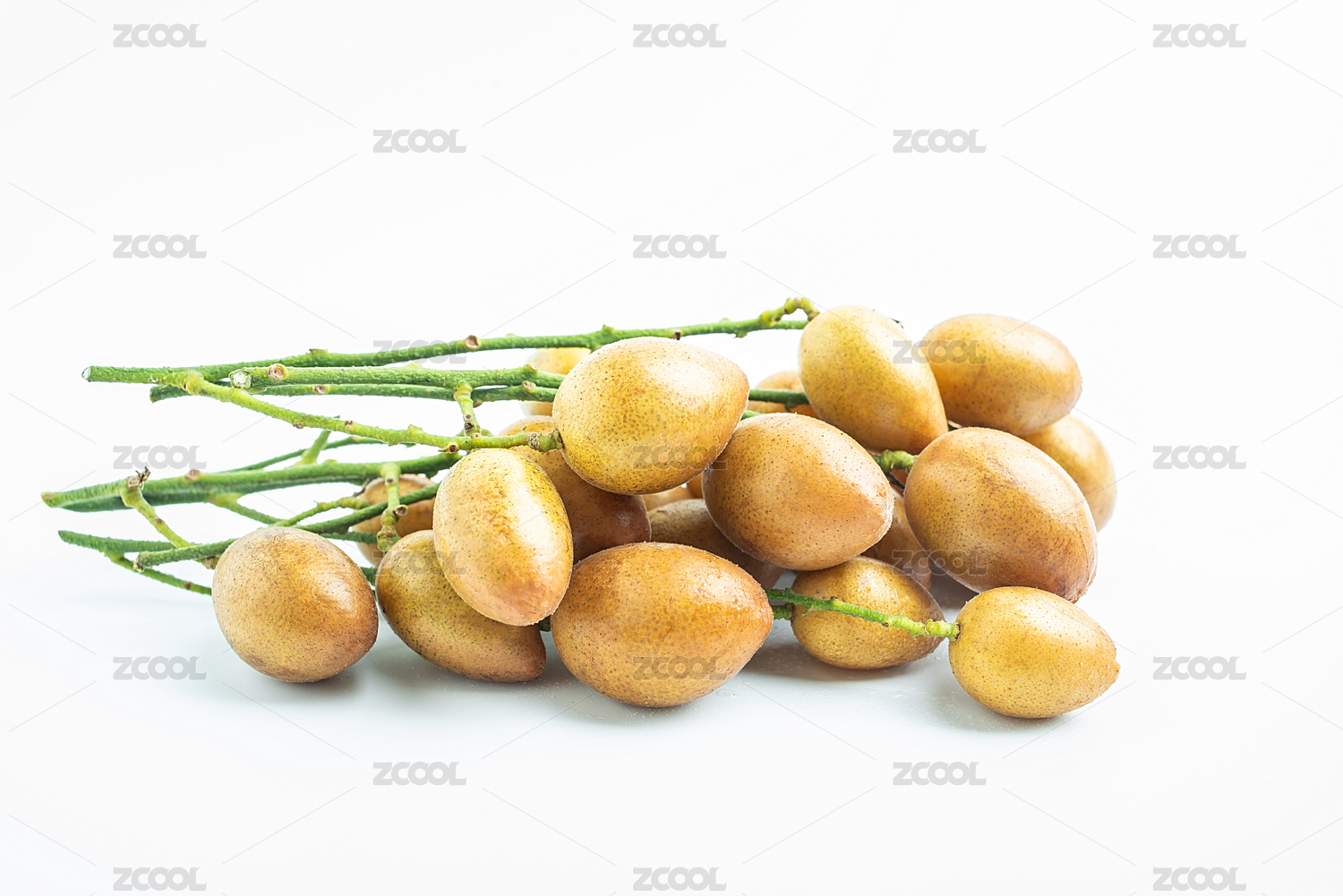 新鮮采摘的黃皮果在白背景上